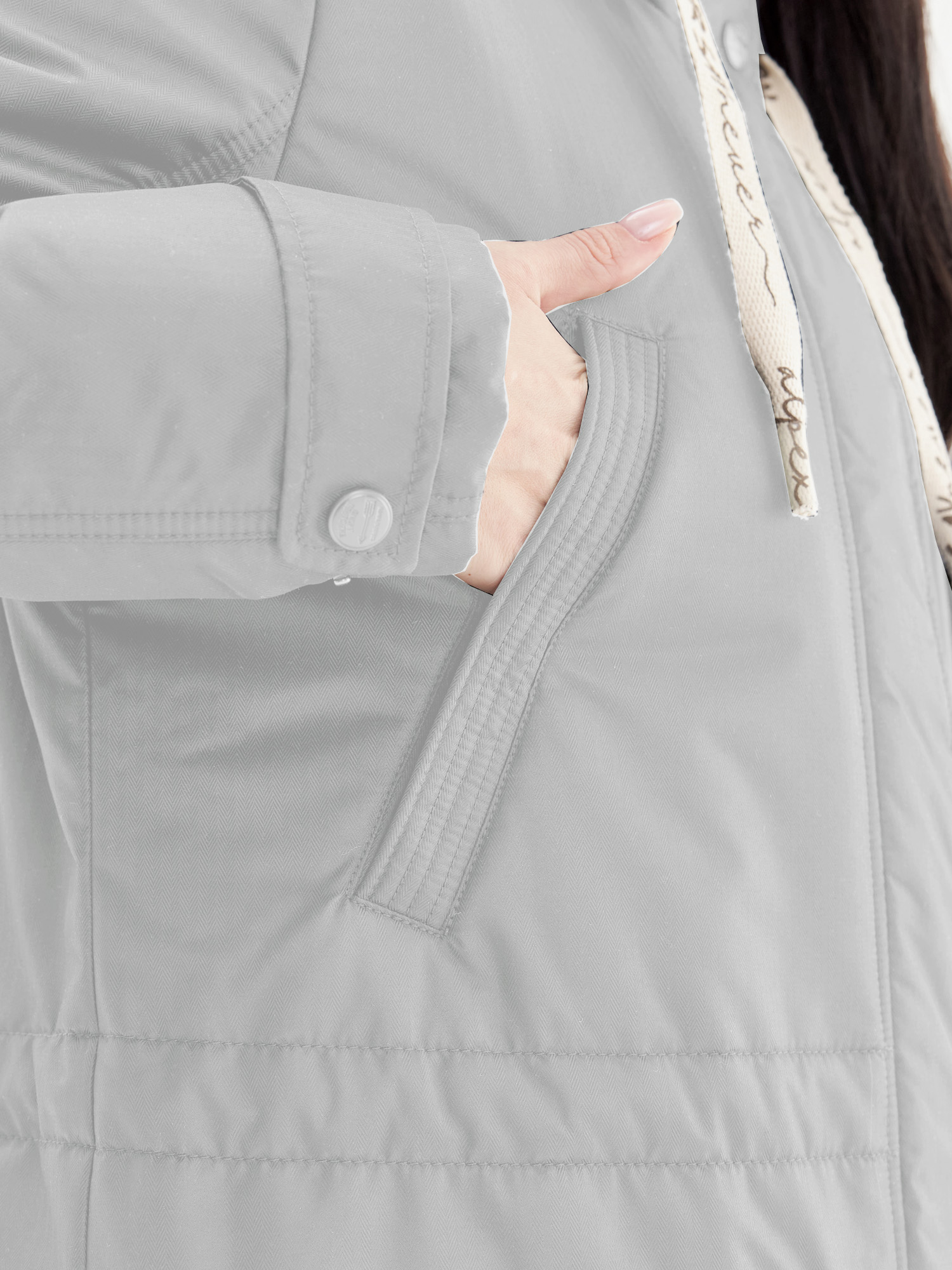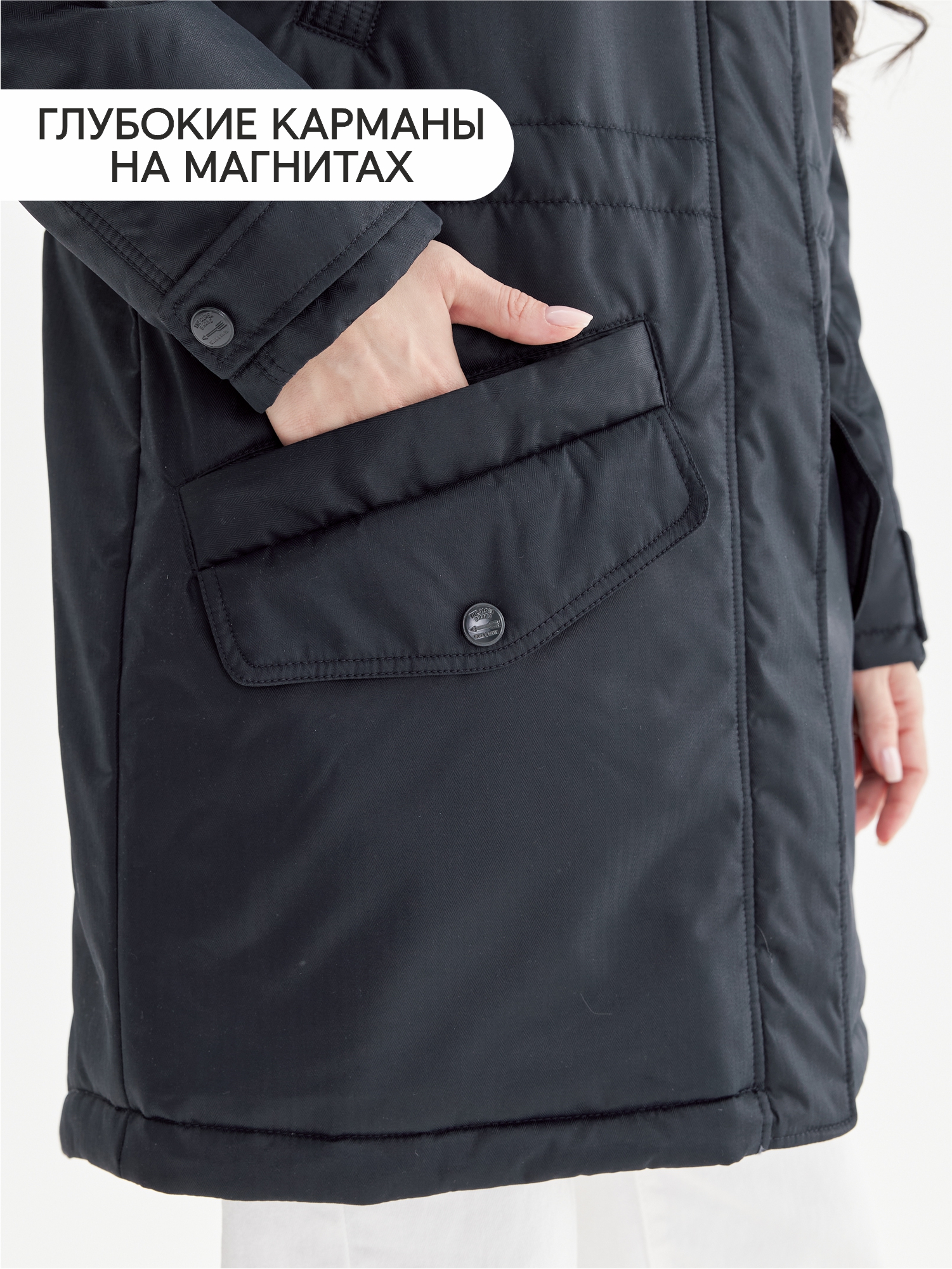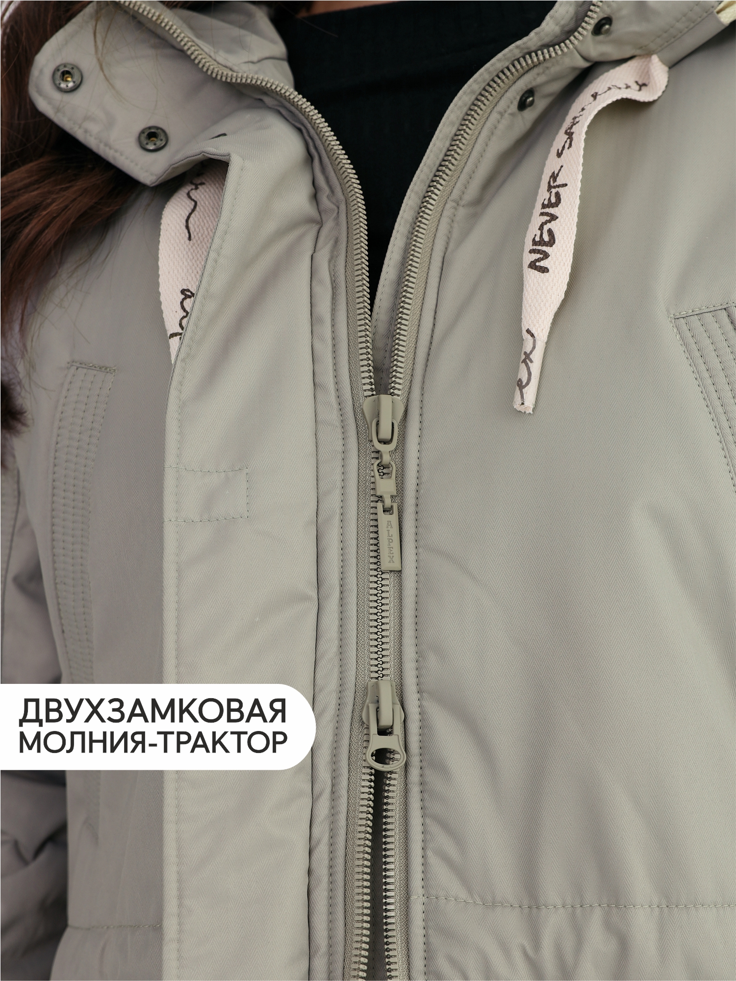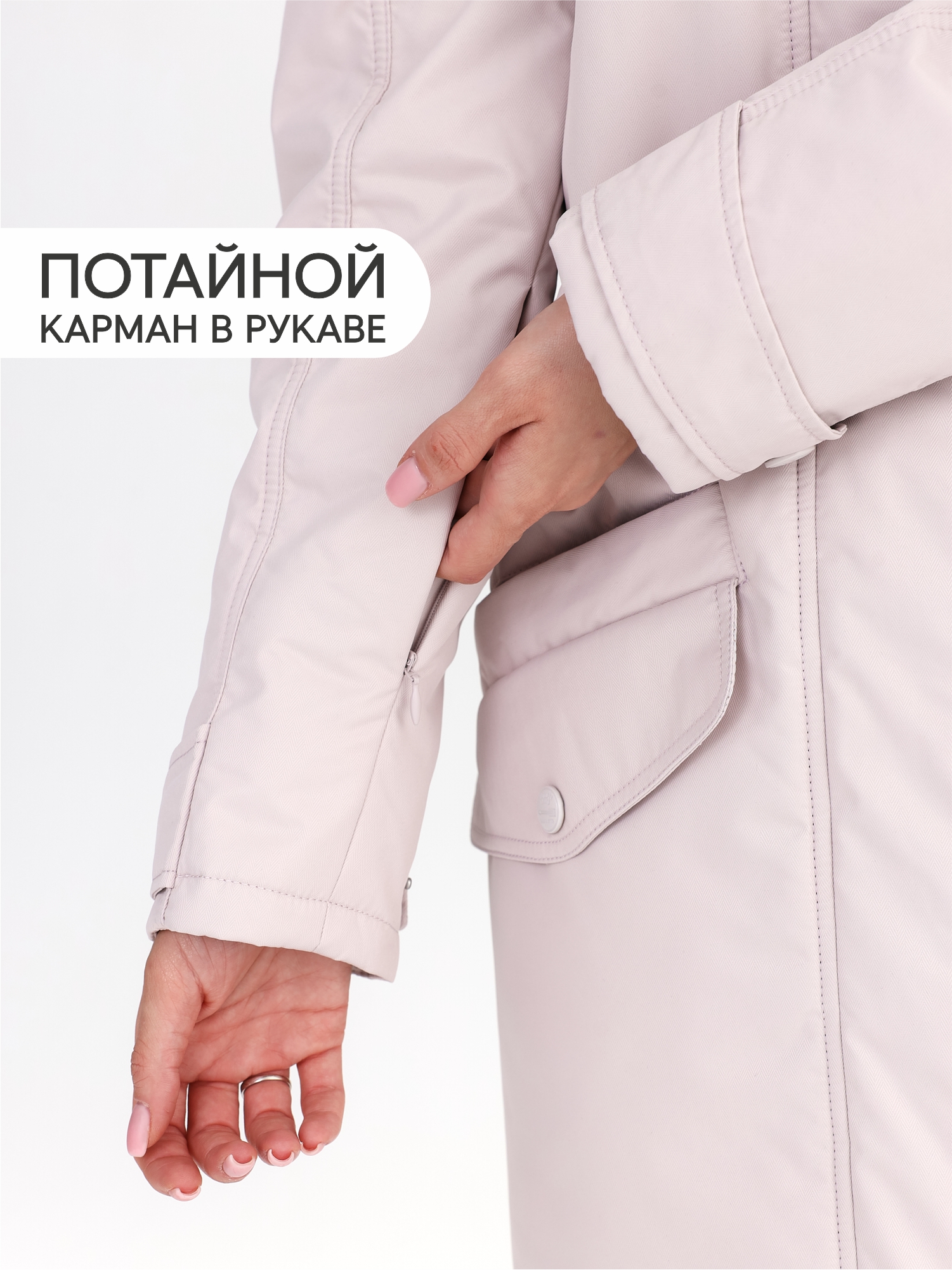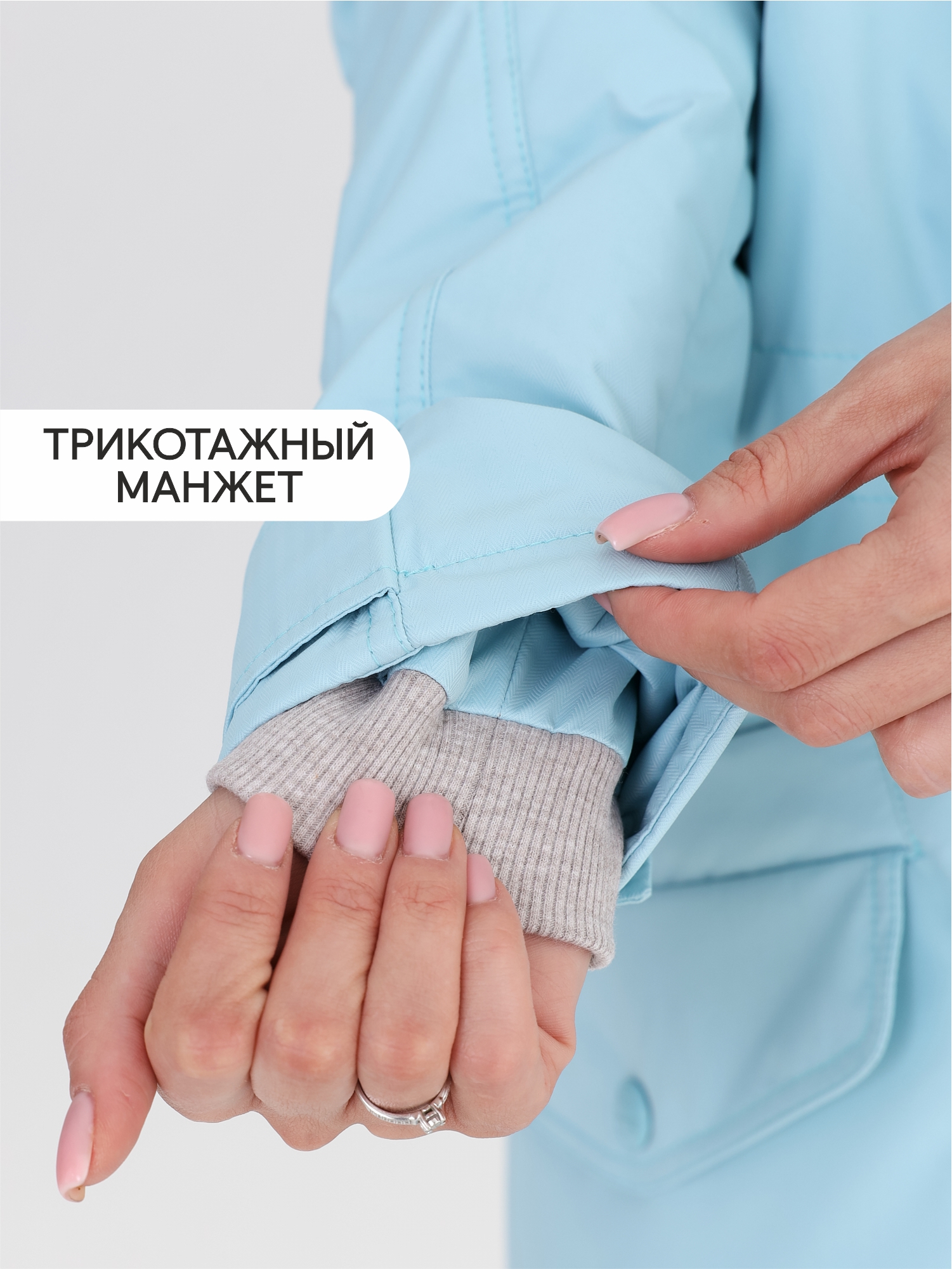 - Пата по низу рукавов на регулируемой кнопке, препятствующая проникновению холодного воздуха.
