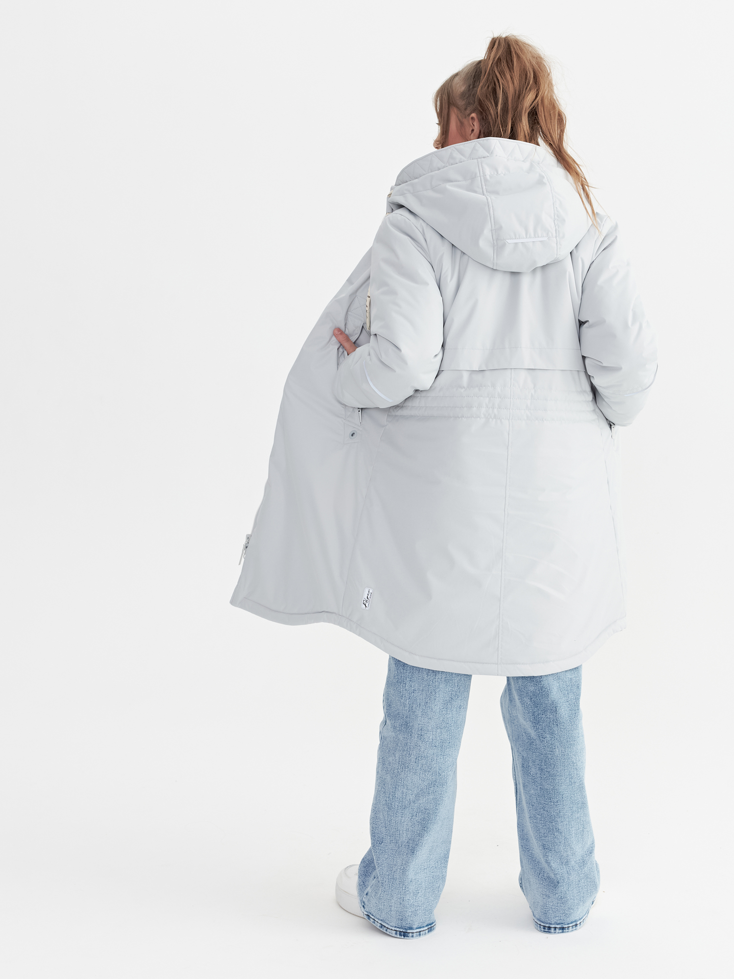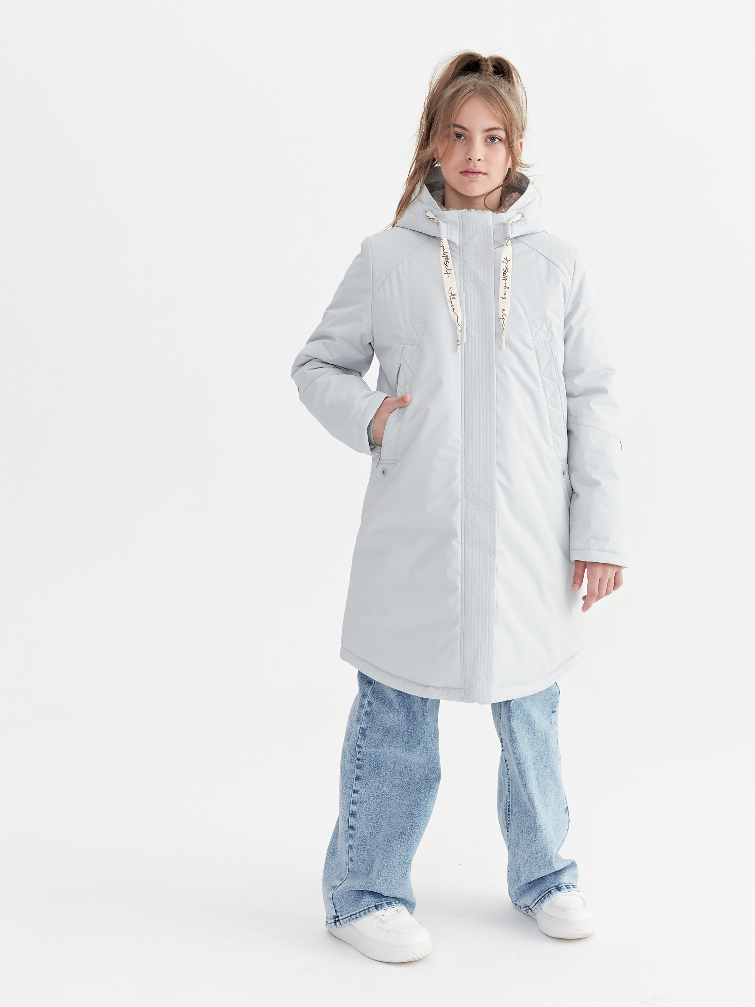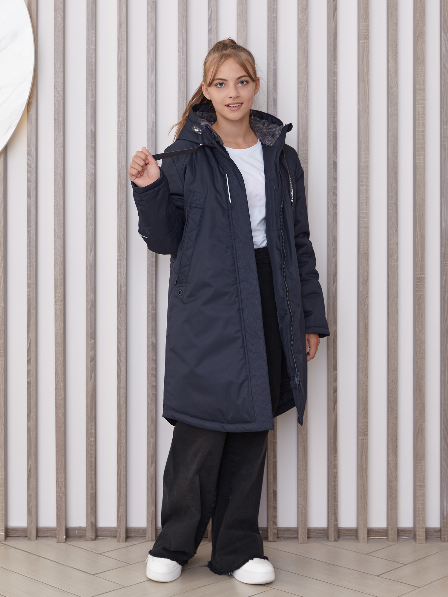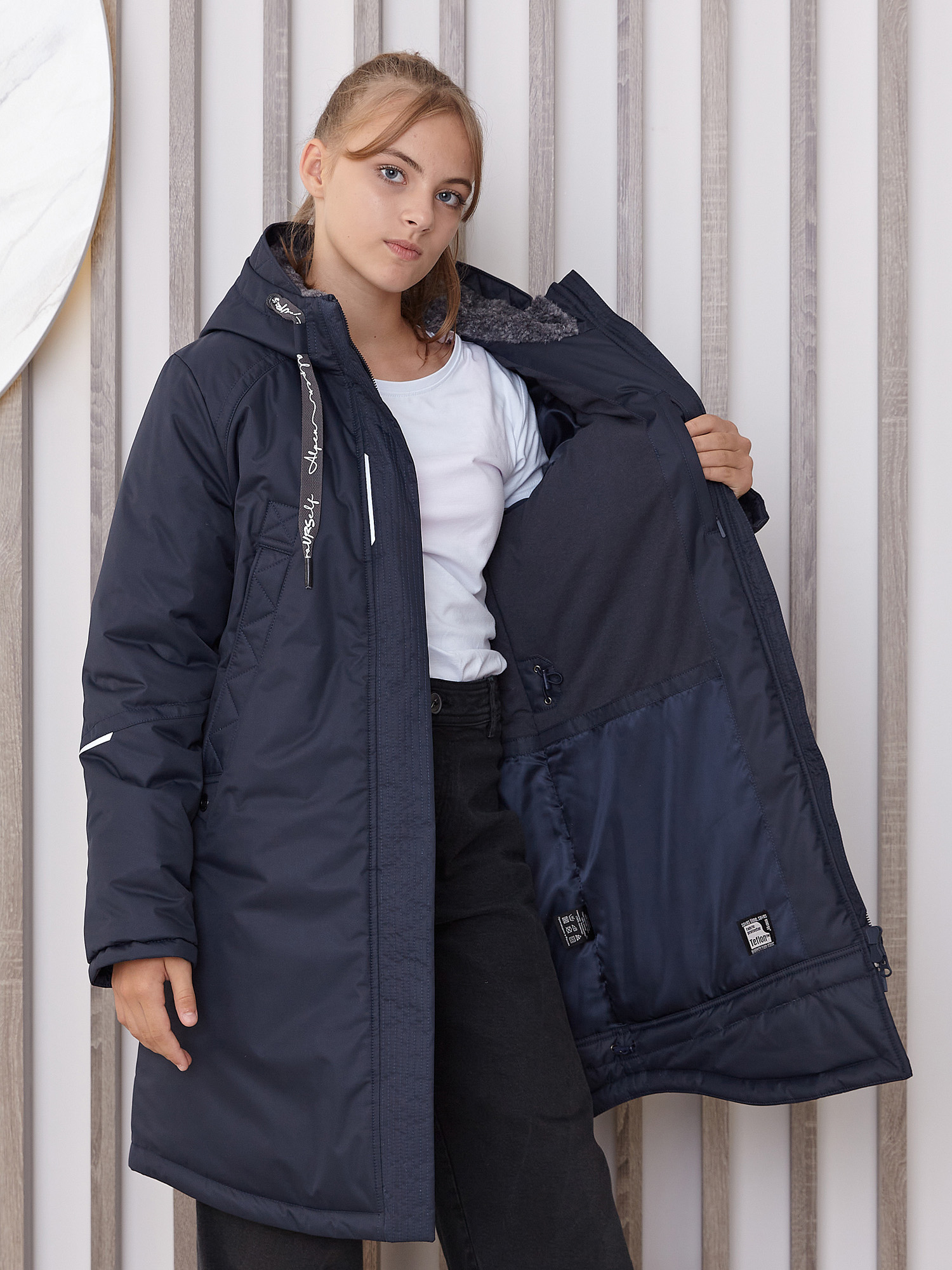Удлинённая куртка-пальто для девочки от бренда ALPEX из влаго- и ветрозащитной мембраны с покрытием DWR и TEFLON (ГРЯЗЕ И ВОДООТТАЛКИВАЮЩЕЕ)