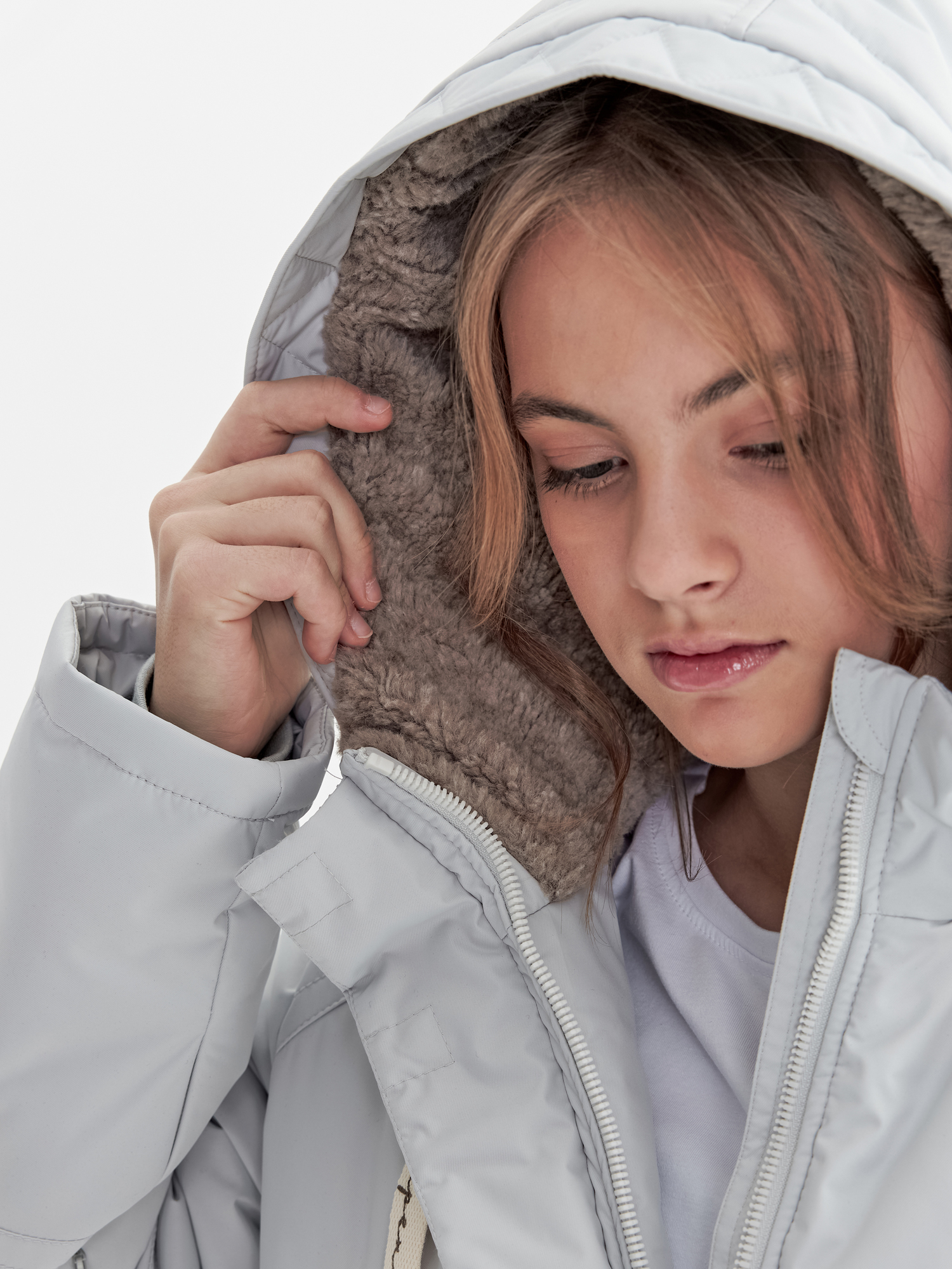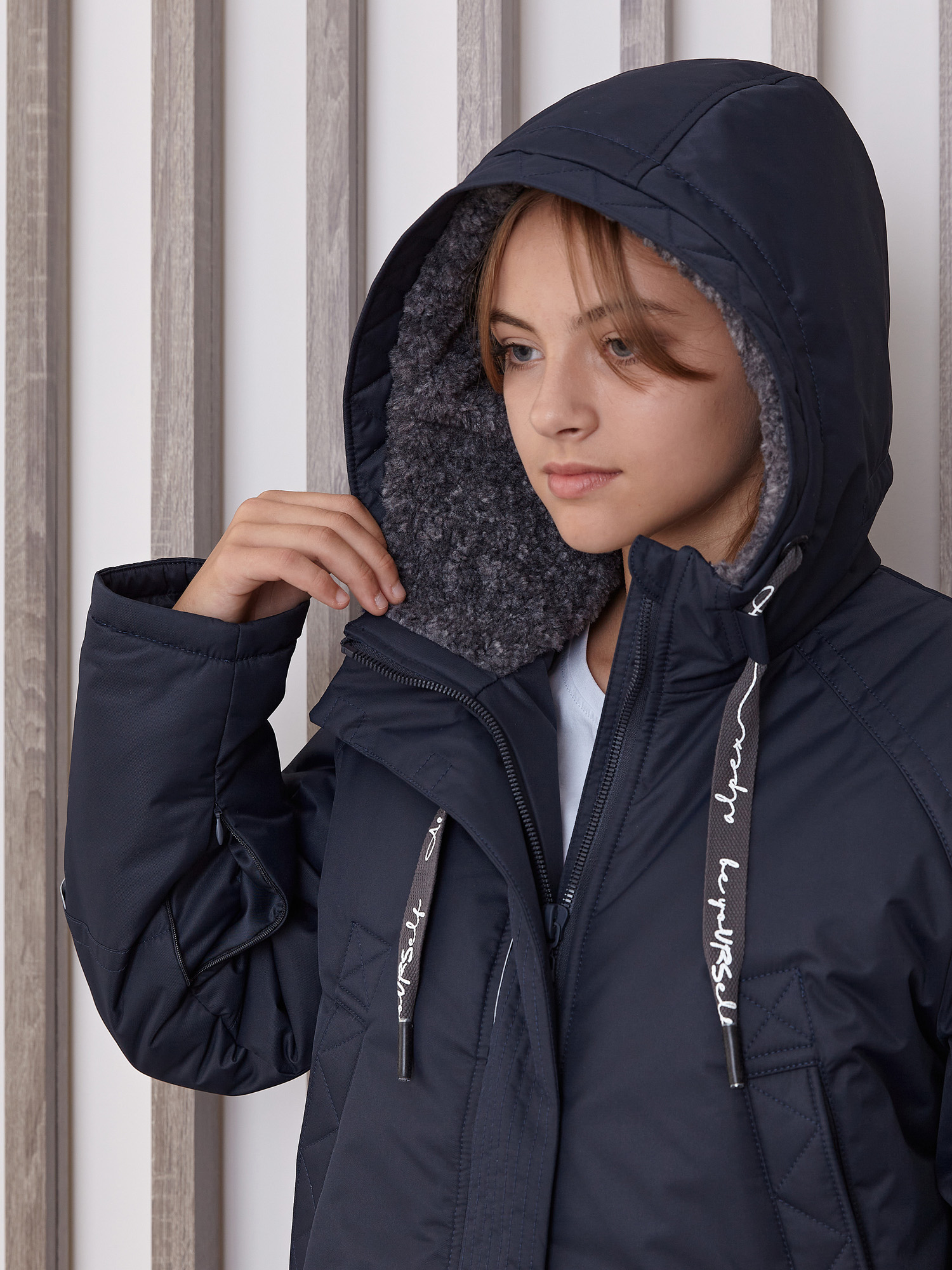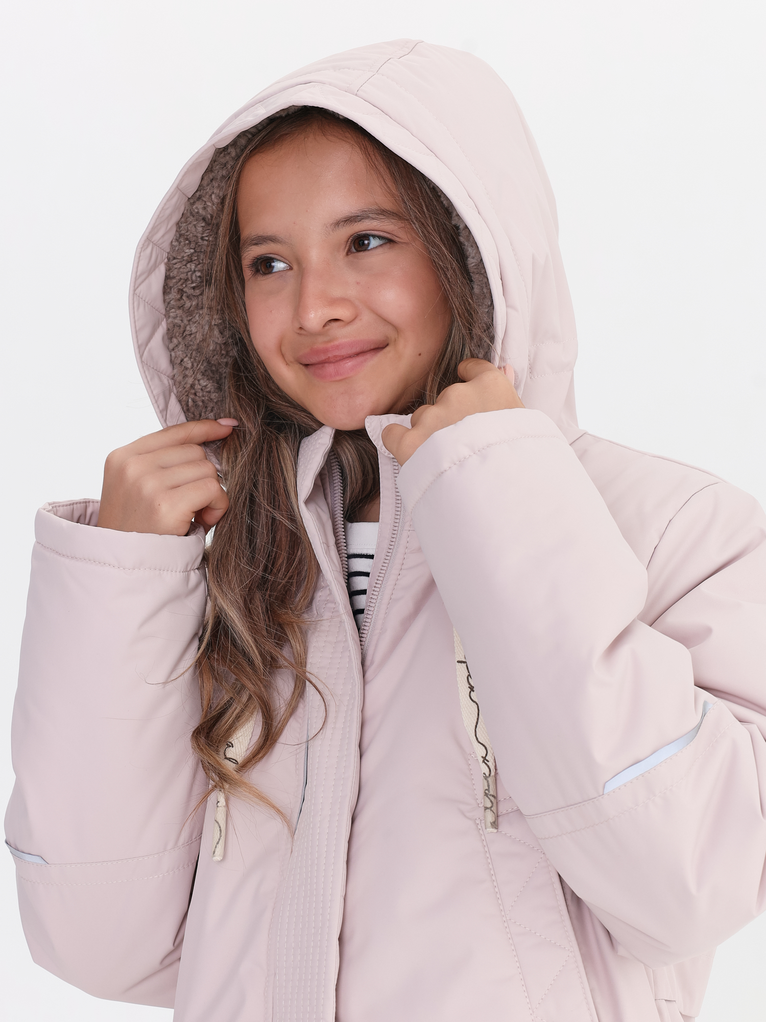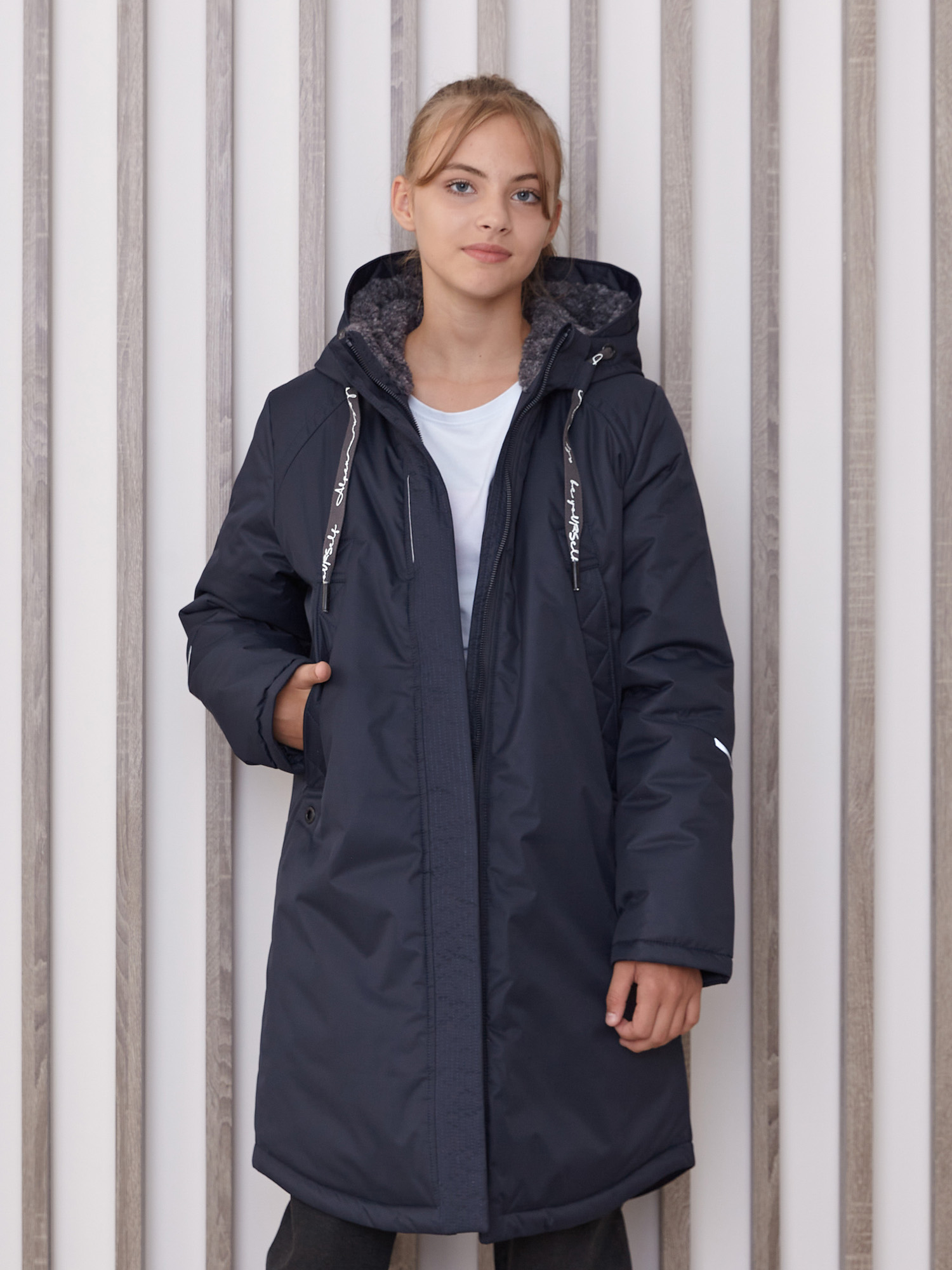 Удлинённая куртка-пальто для девочки от бренда ALPEX из влаго- и ветрозащитной мембраны с покрытием DWR и TEFLON (ГРЯЗЕ И ВОДООТТАЛКИВАЮЩЕЕ)