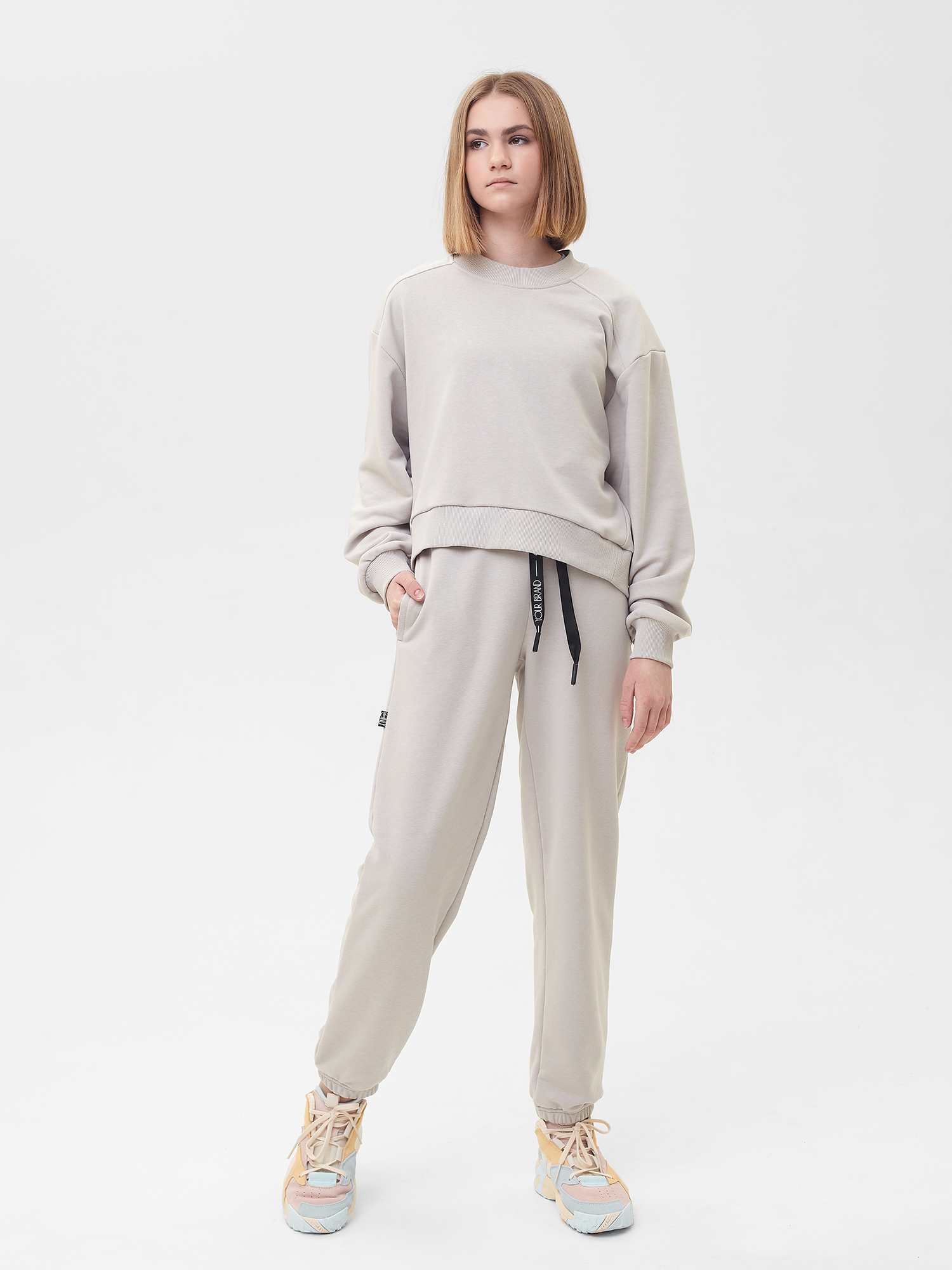 - Oversize-крой со спущенной линией плеча — свобода движений на уроках физкультуры и прогулках.