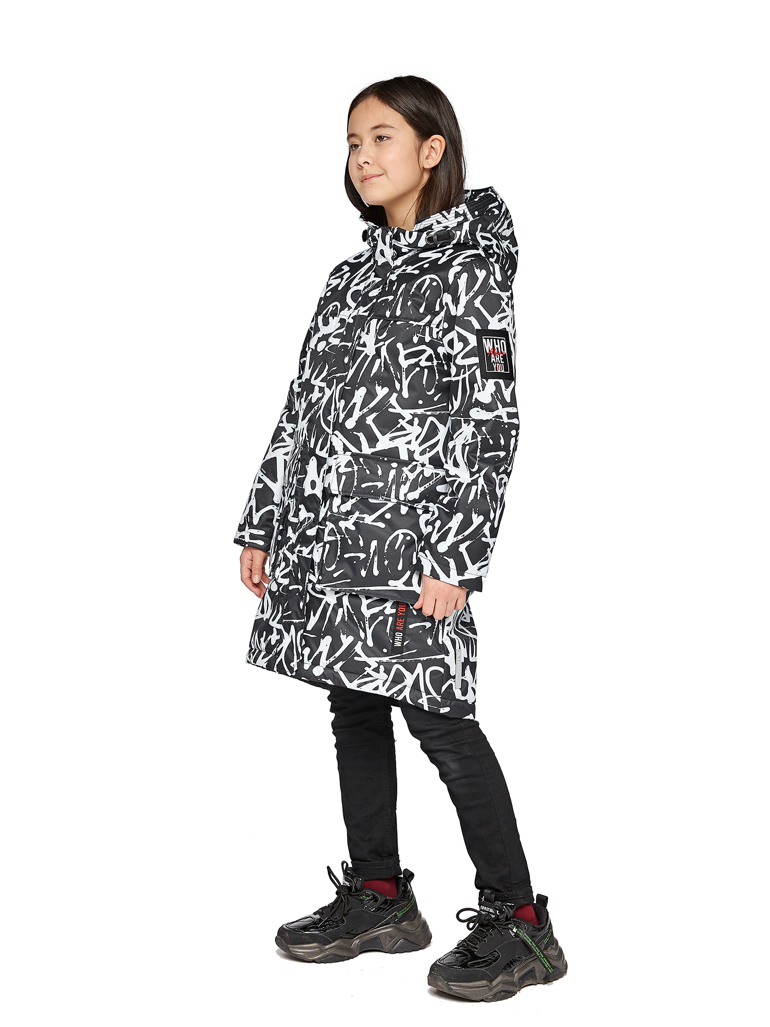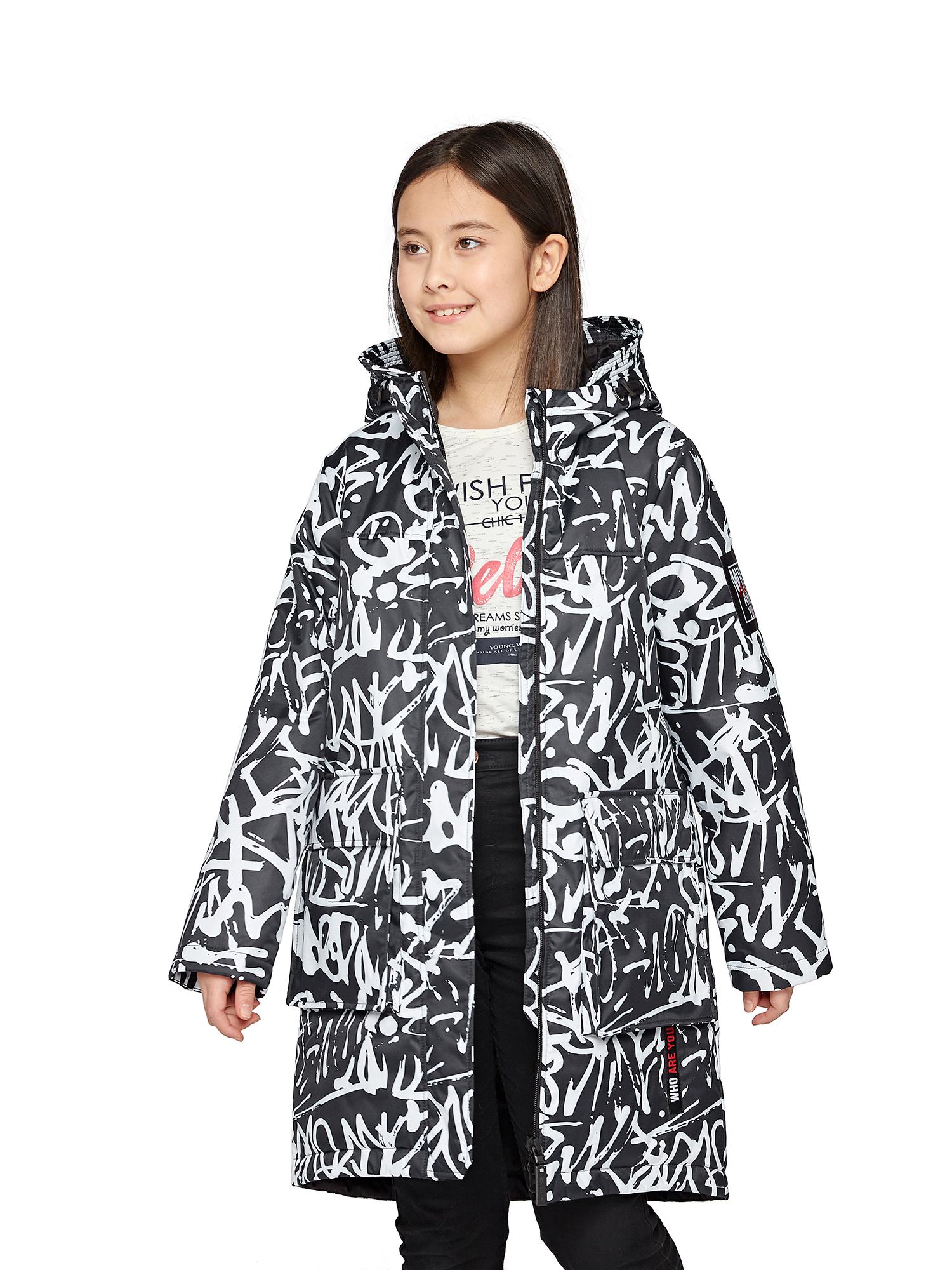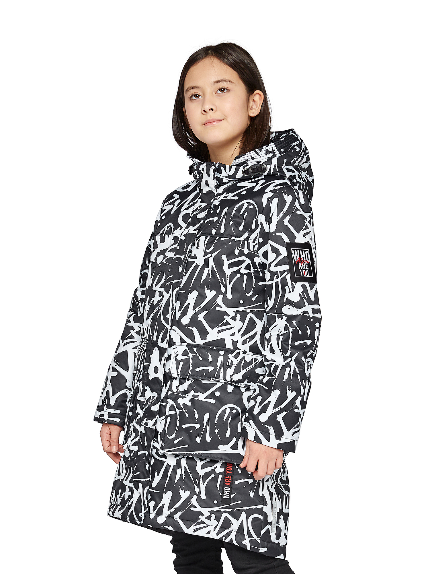 Утепленный капюшон не съемный.Внутренние утяжки с фиксаторами по талии и низу изделия.Внутренний манжет.