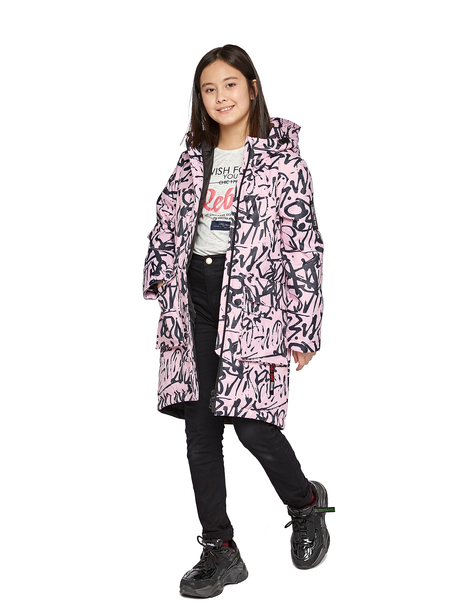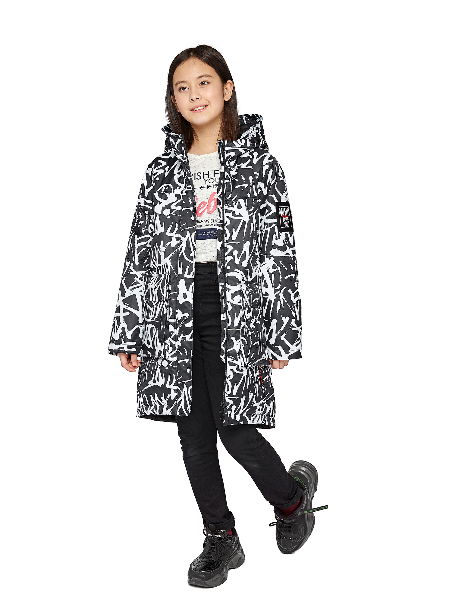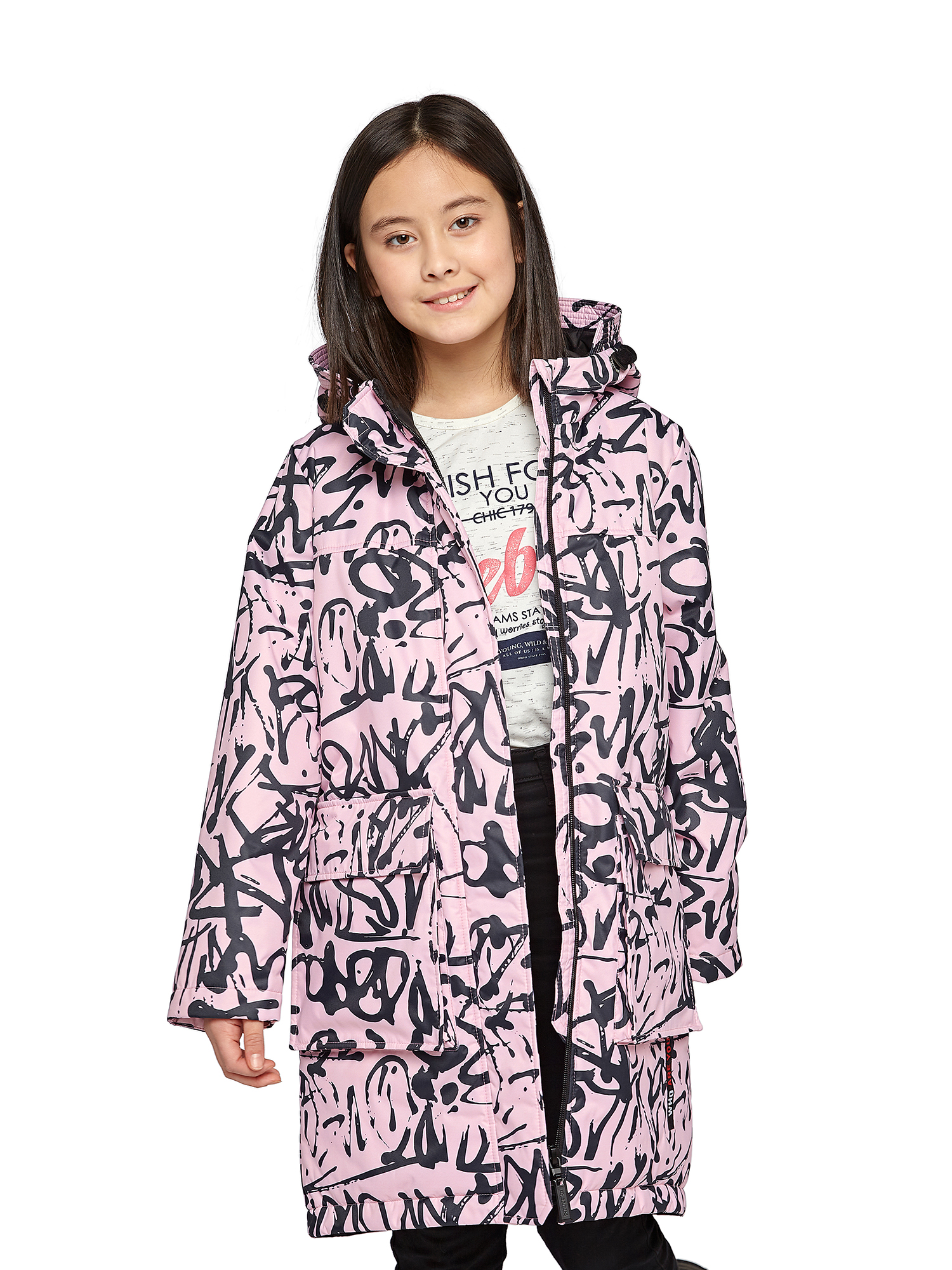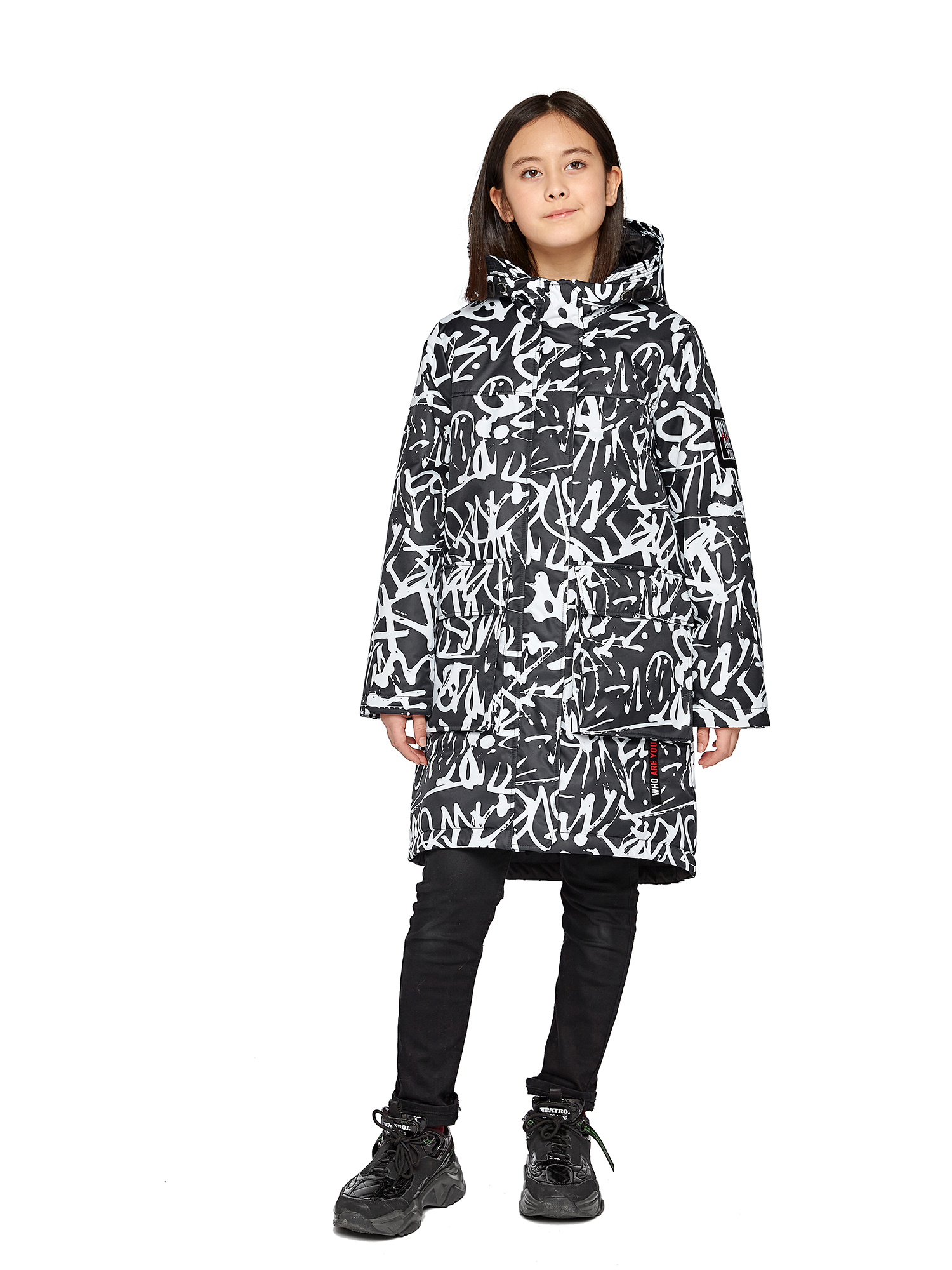 Утепленный капюшон не съемный.Внутренние утяжки с фиксаторами по талии и низу изделия.Внутренний манжет.