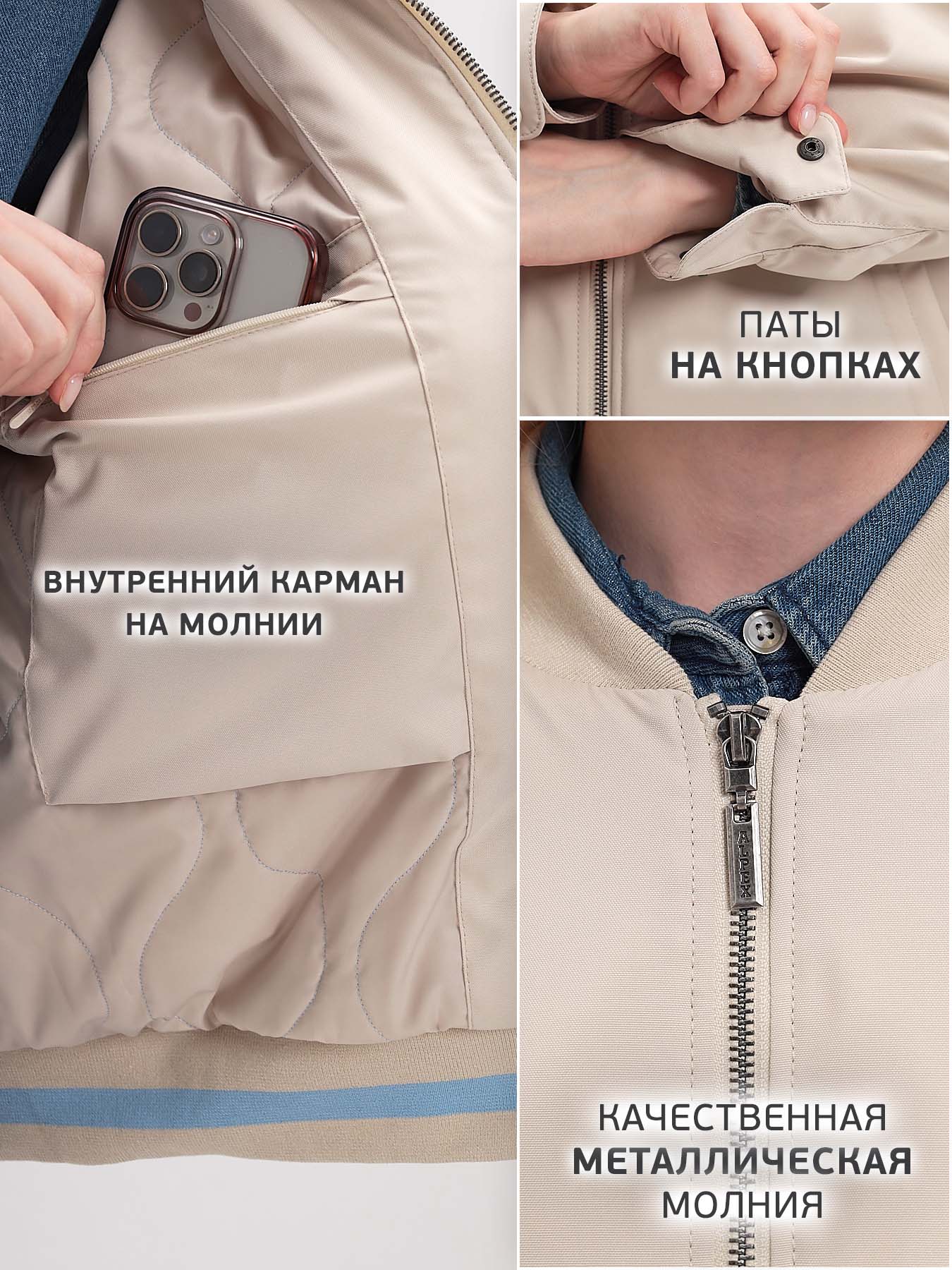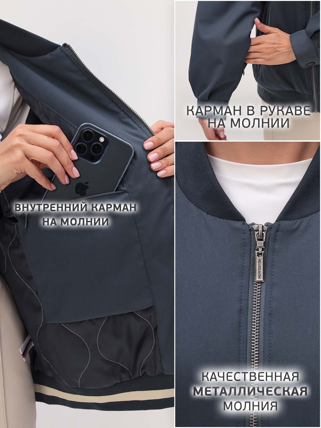 - На рукаве предусмотрен внутренний карман на молнии.