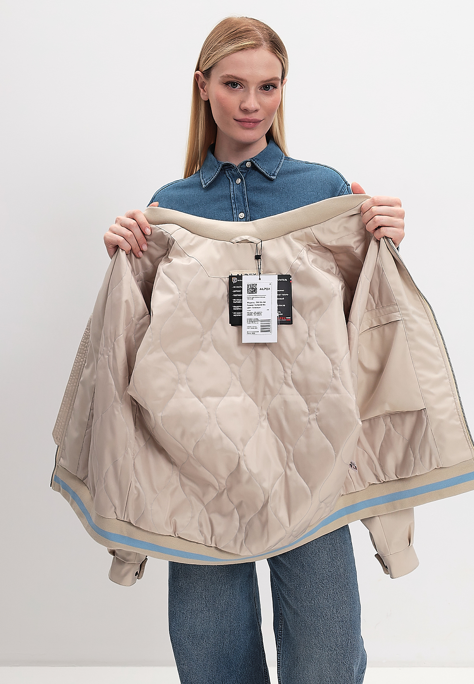 Кроссовки, джинсы, легинсы, трикотажные костюмы или кэжуал-платья — лаконичный дизайн куртки вписывается как в спортивный, так и в повседневный образ.