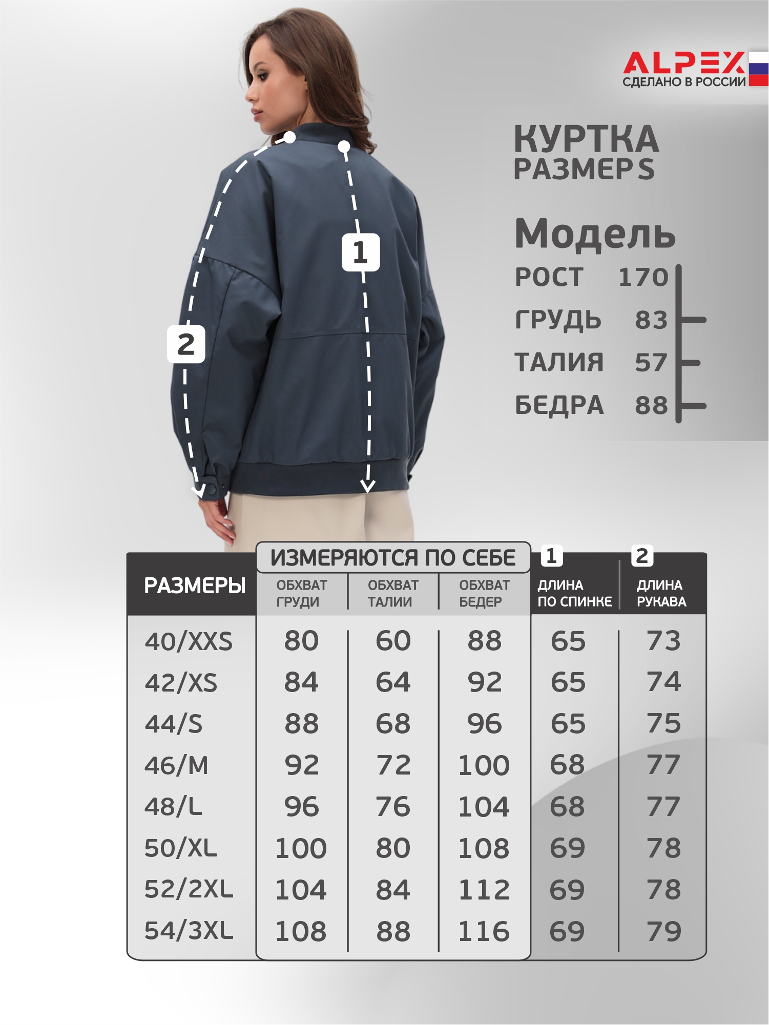 - Полный размерный 2XS-3XL ряд .