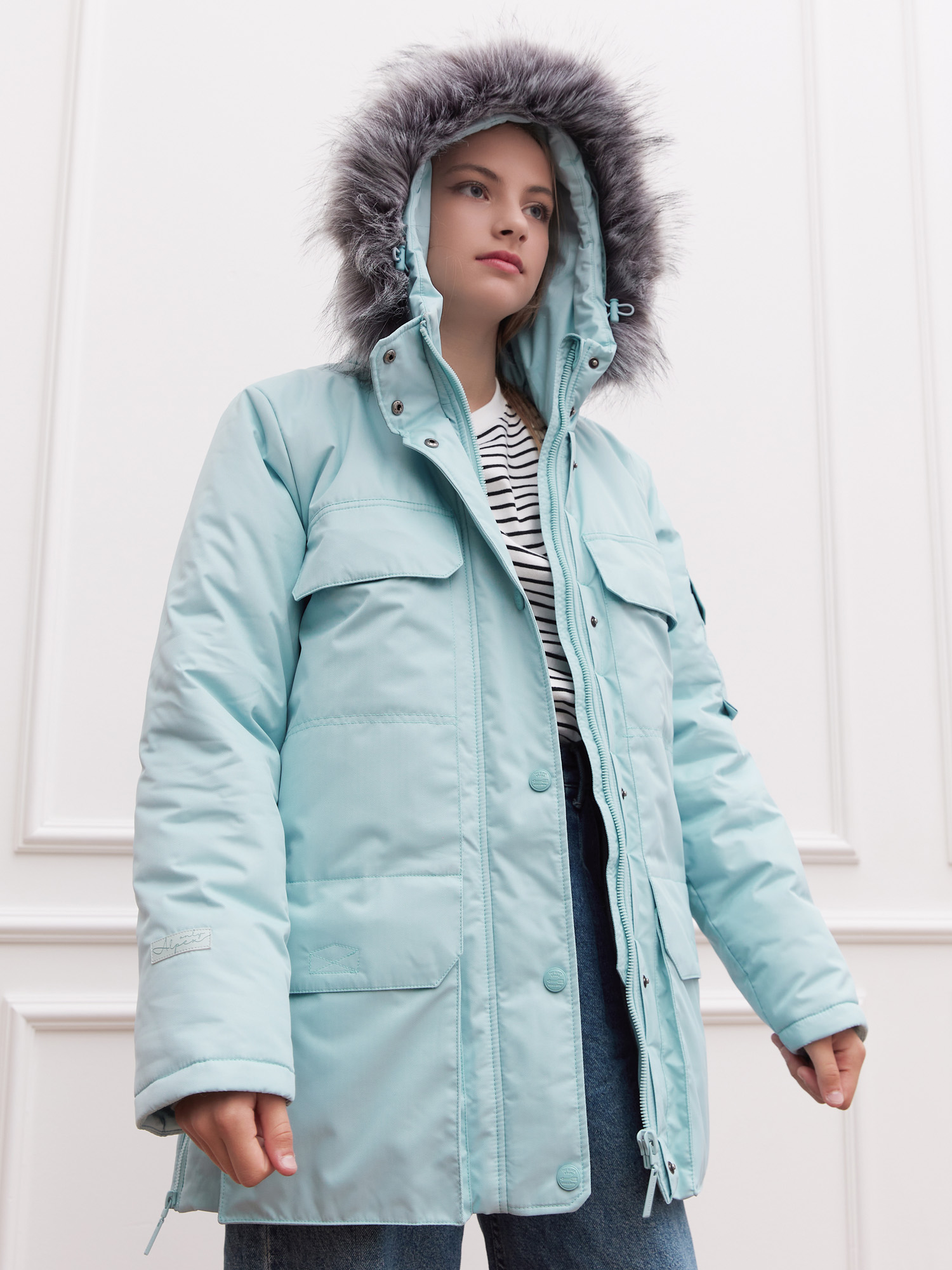 Зимняя куртка для девочки с опушкой из искусственного меха от бренда ALPEX