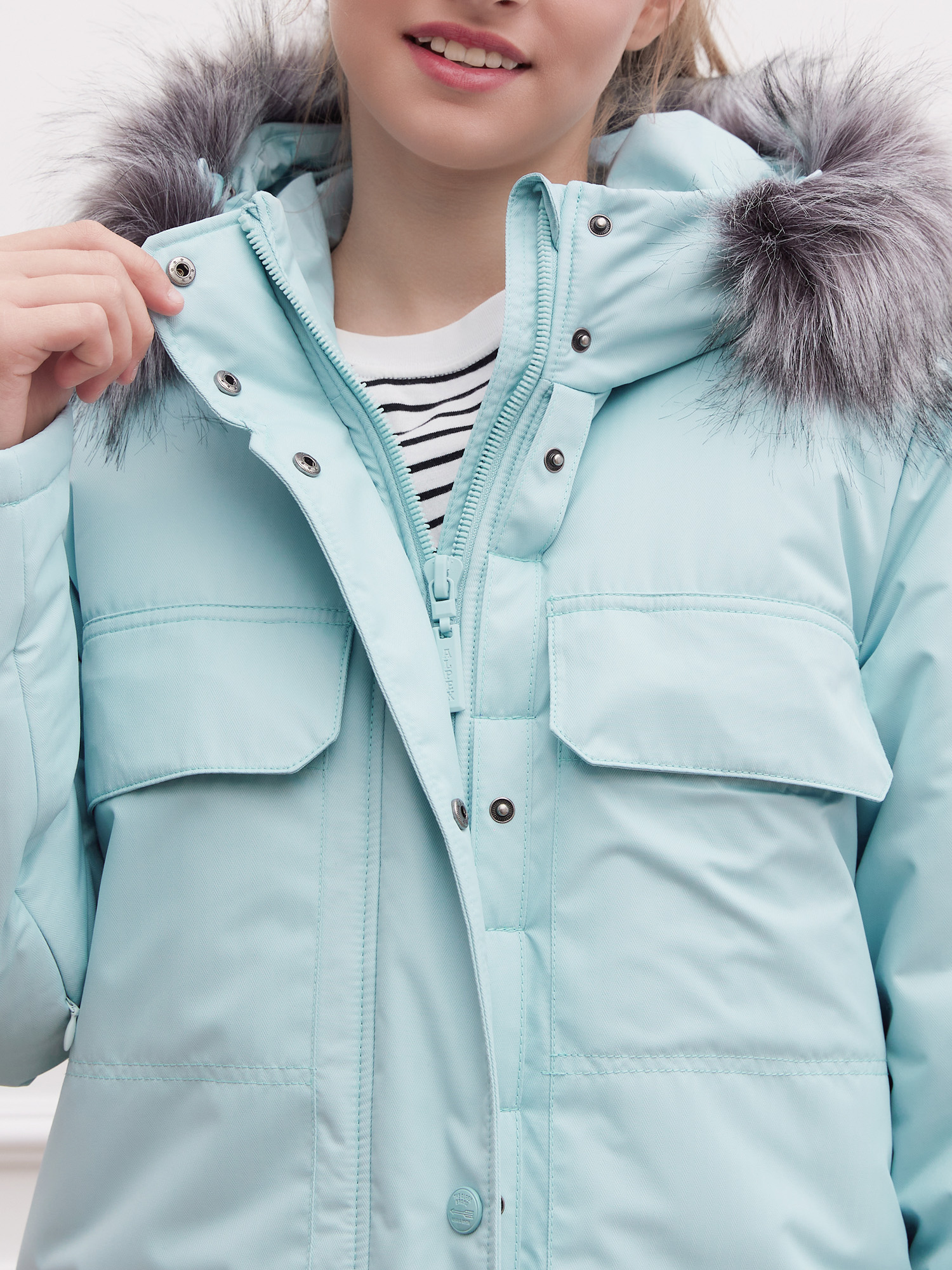 - На капюшоне опушка из искусственного меха.