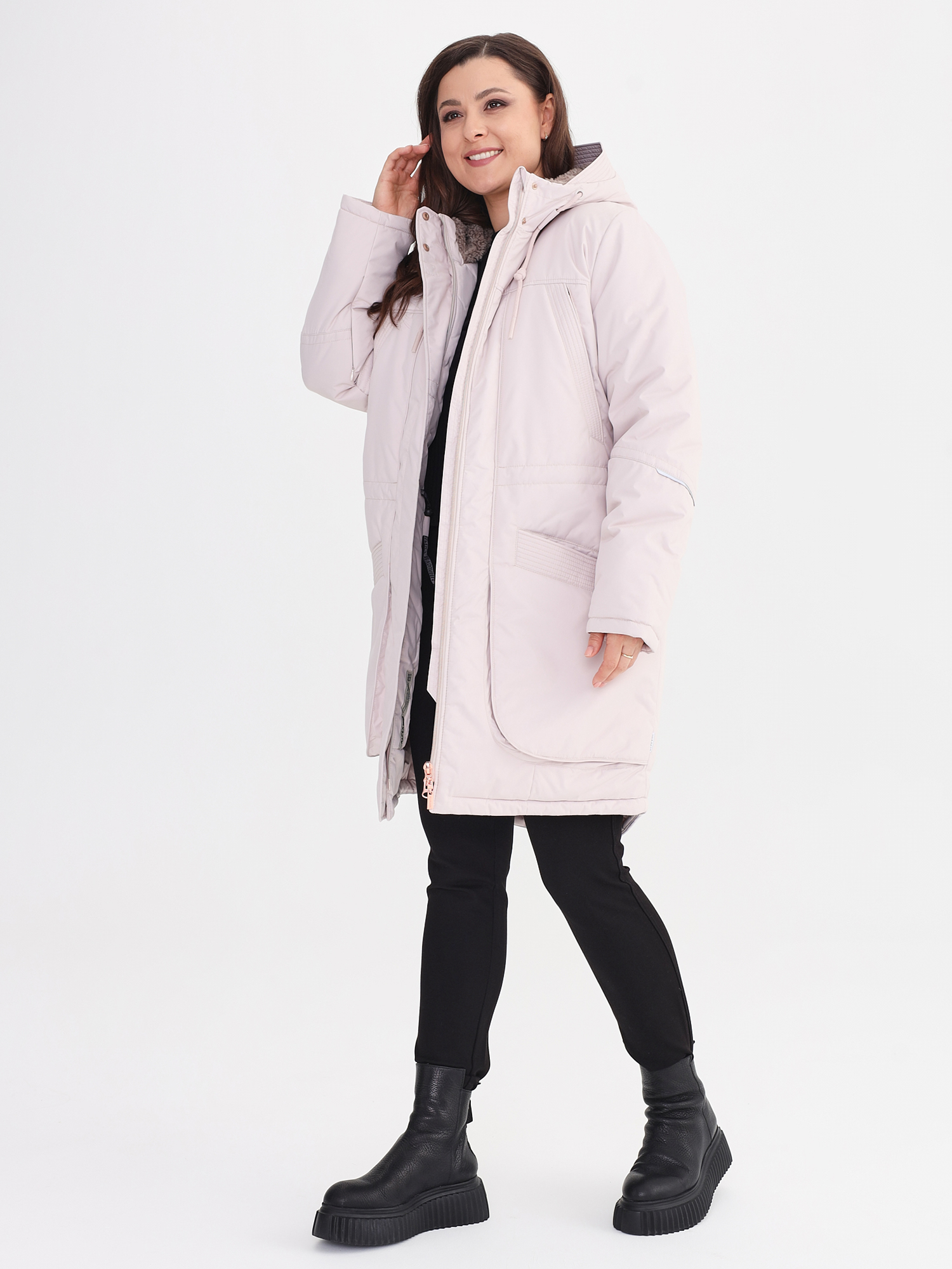 - Капюшон внутри с искусственным мехом.