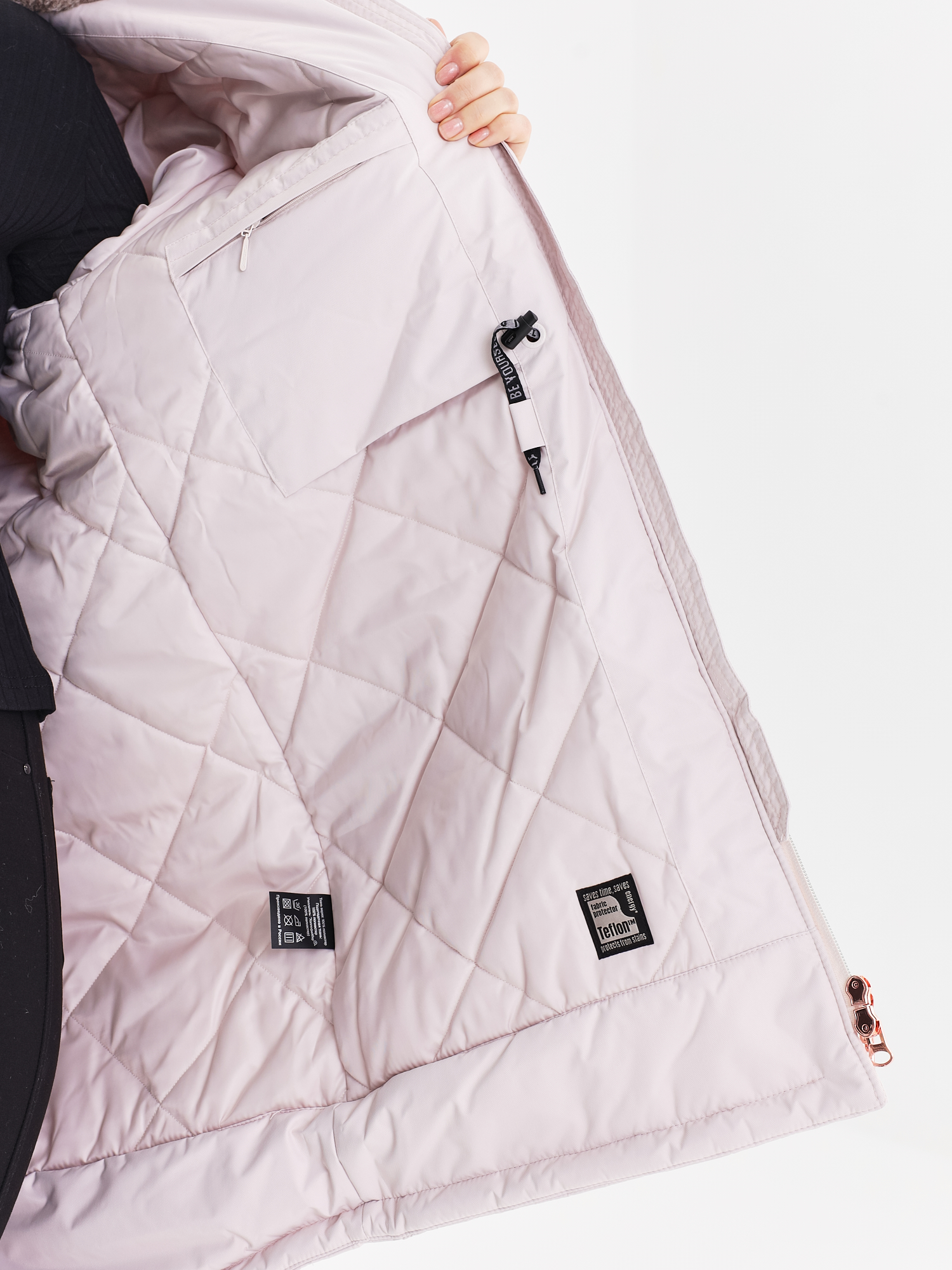 - На подкладке рукава имеется трикотажный подманжетник, препятствующий проникновению холодного воздуха.