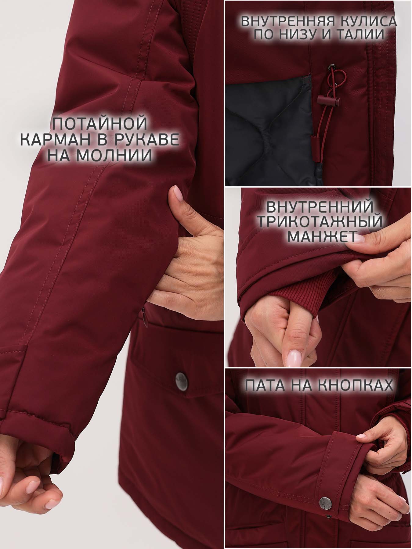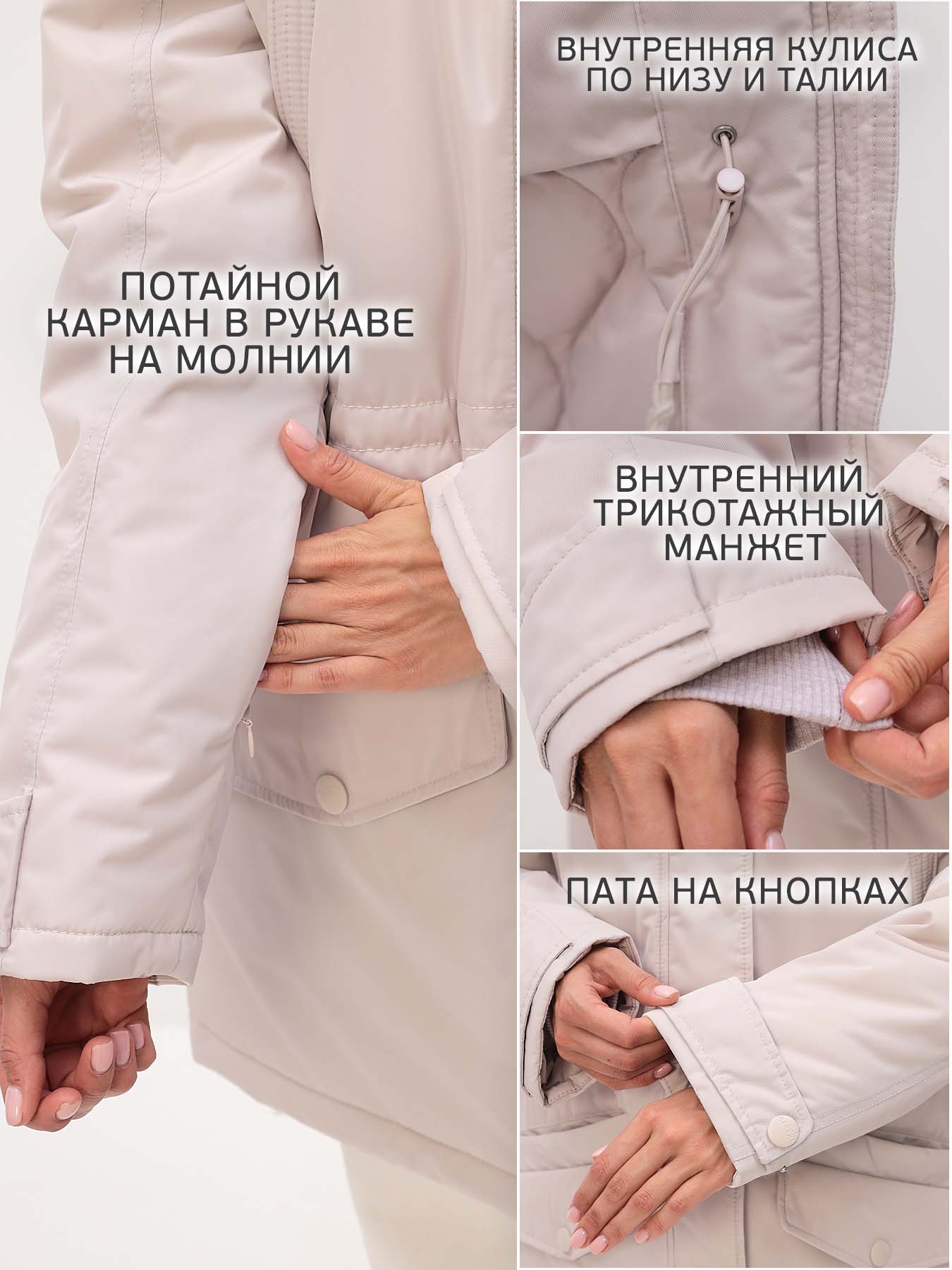 - Низ рукавов на регулируемой кнопке.