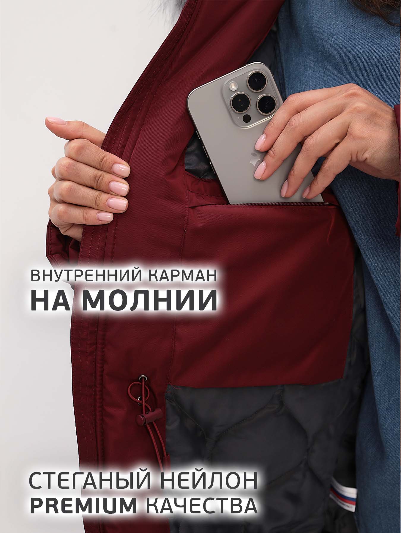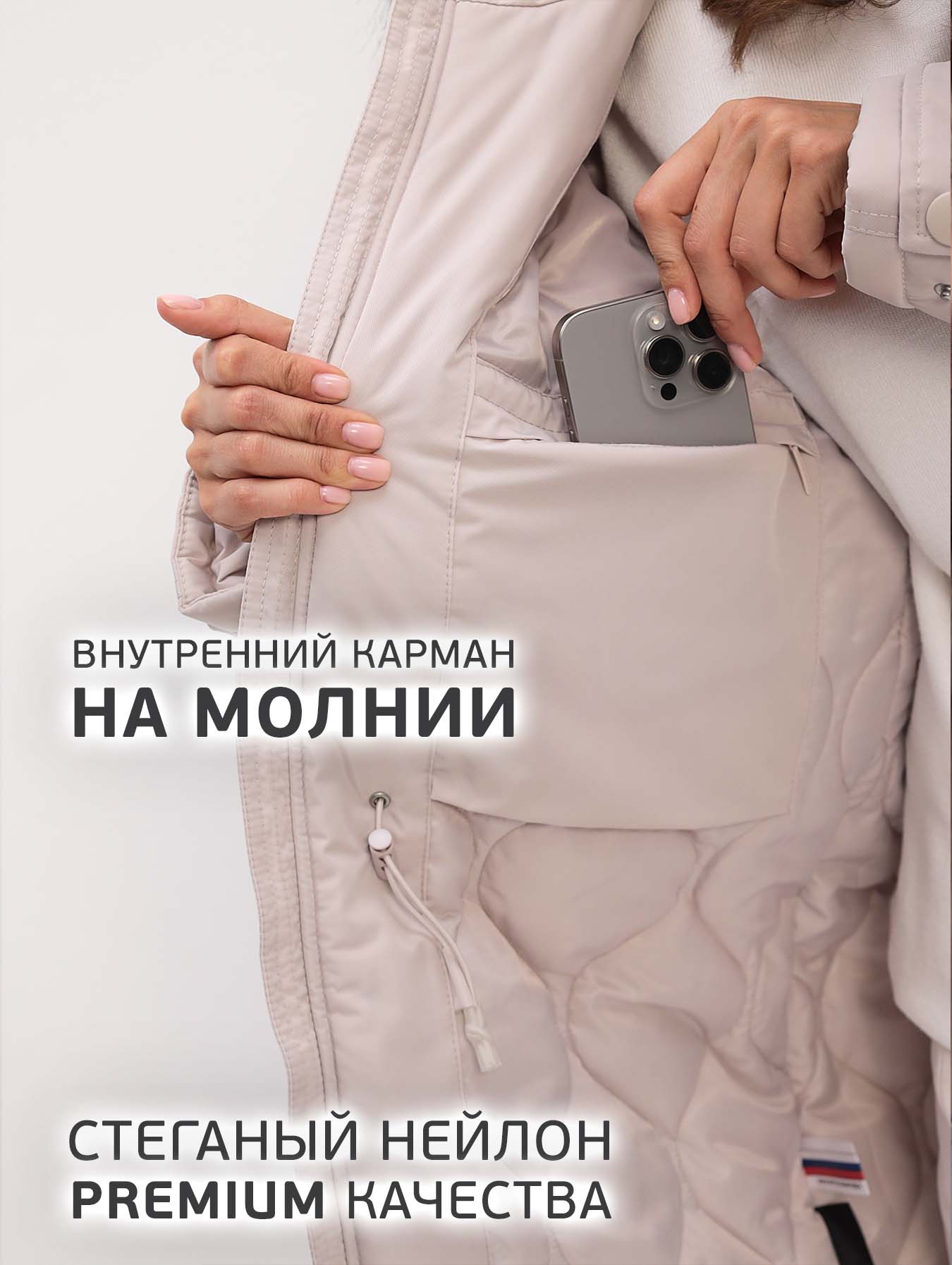 - 1 накладной карман на подкладке.
