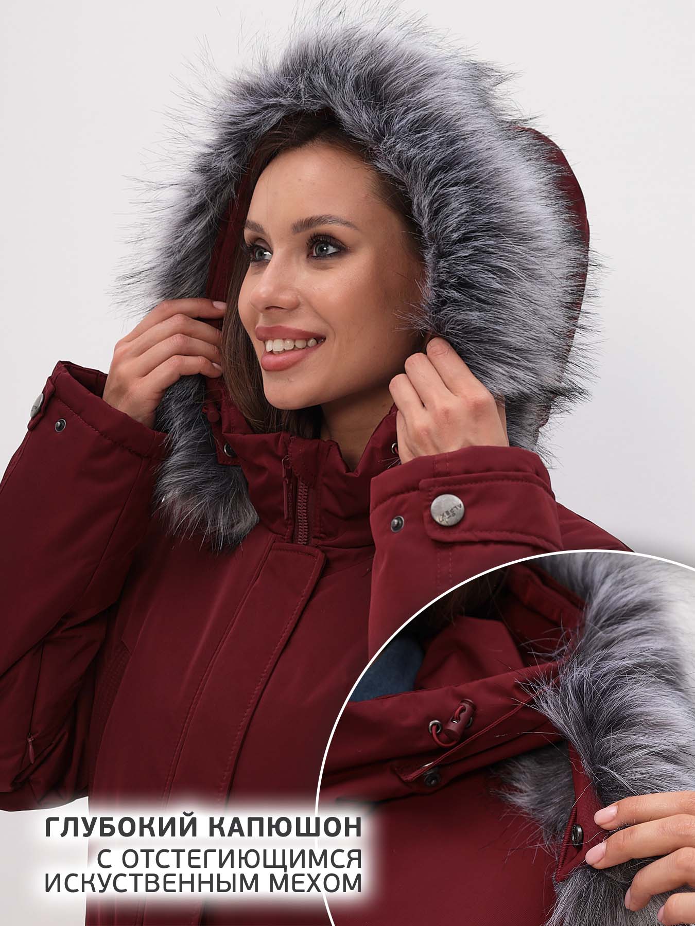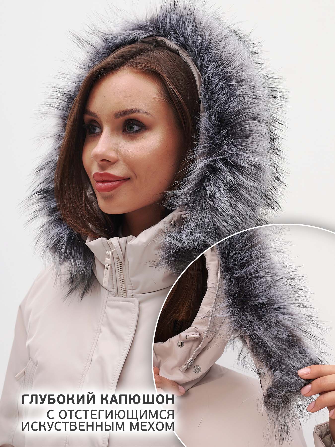 - Опушка из искусственного меха съемная.