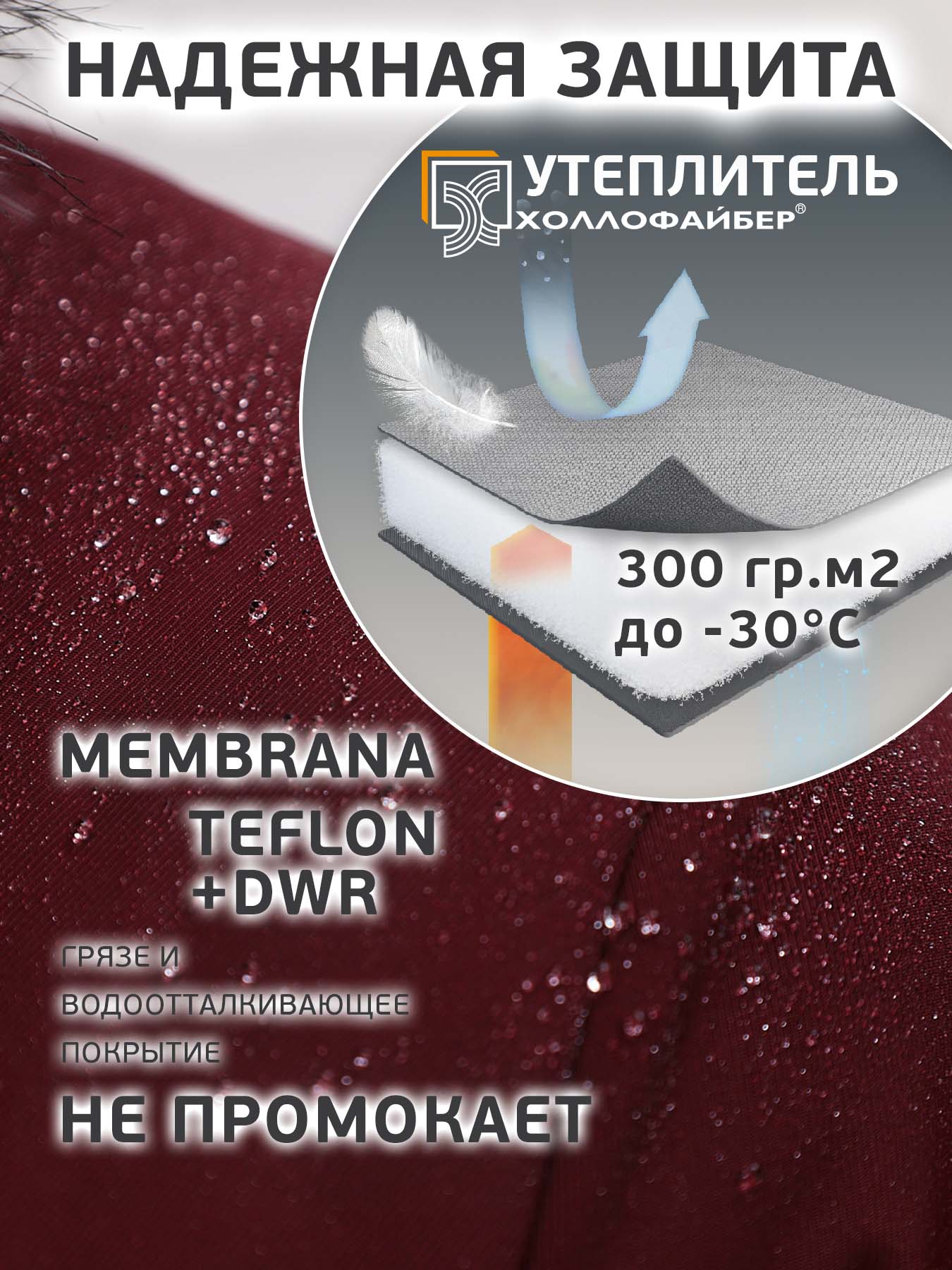 - Утеплитель: Холлофайбер 300 г/м² цельным полотном — равномерное тепло без «холодных зон», не скатывается.