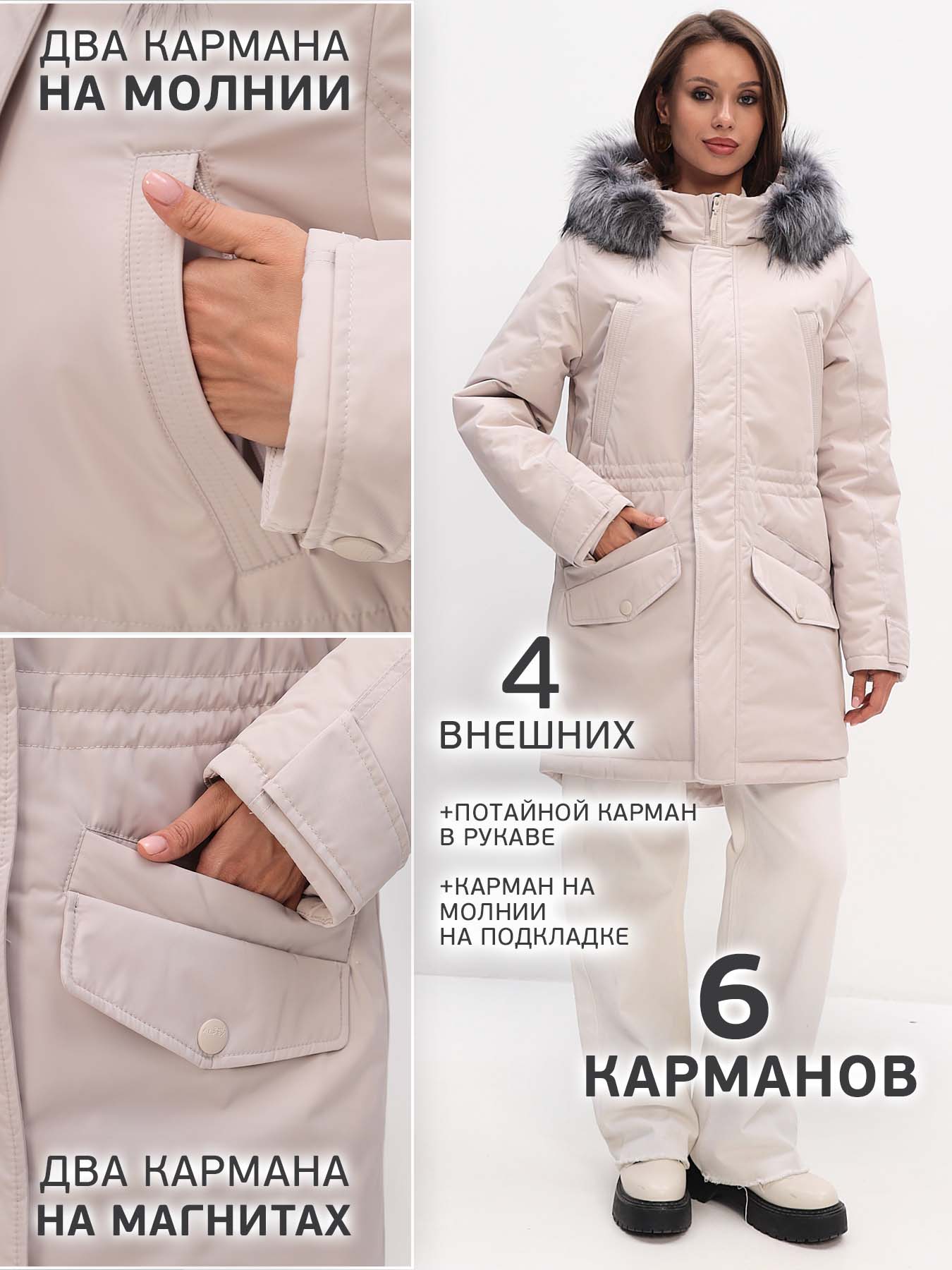 - Карманы (6 штук):