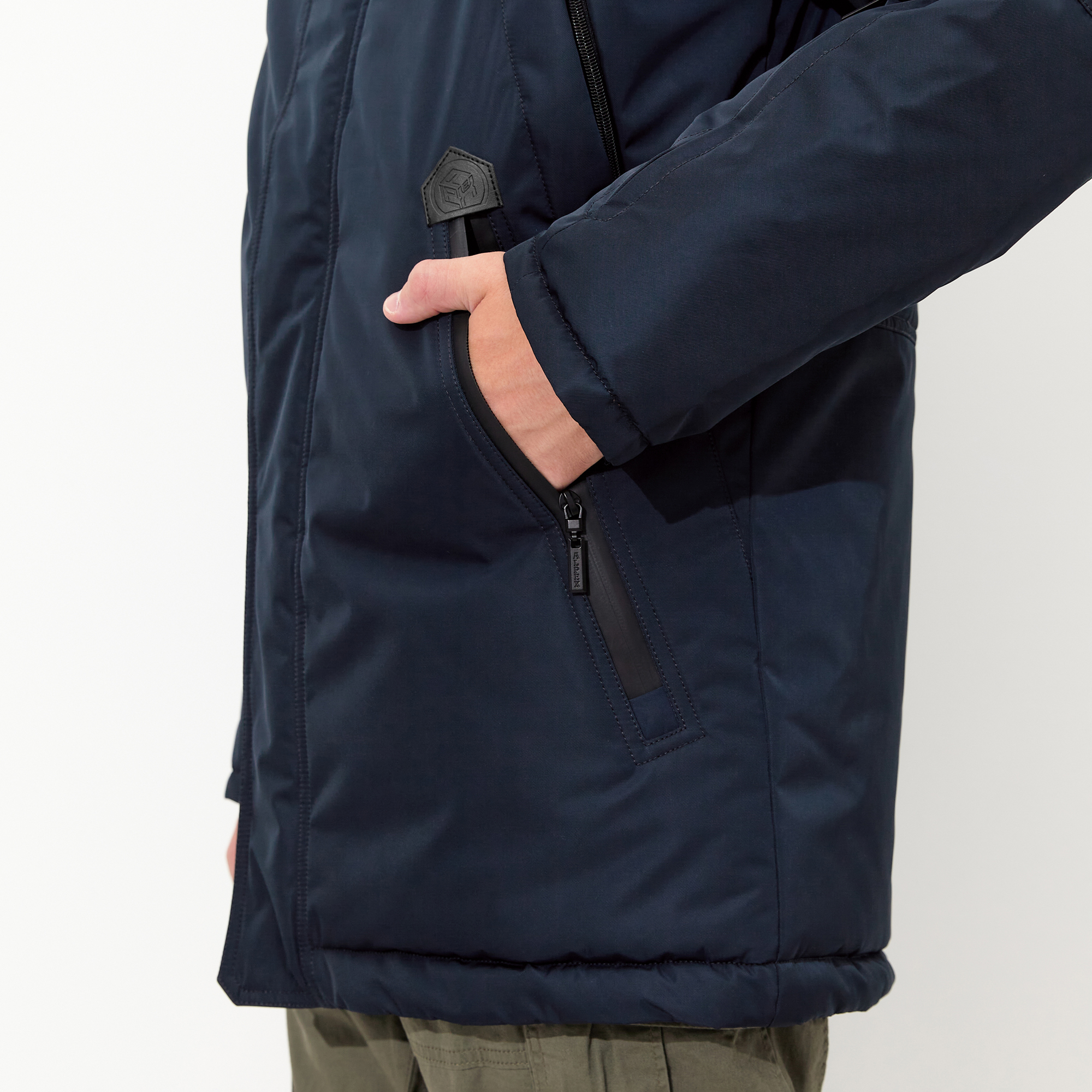 - 2 боковых прорезных кармана, застёгивающиеся на молнию;