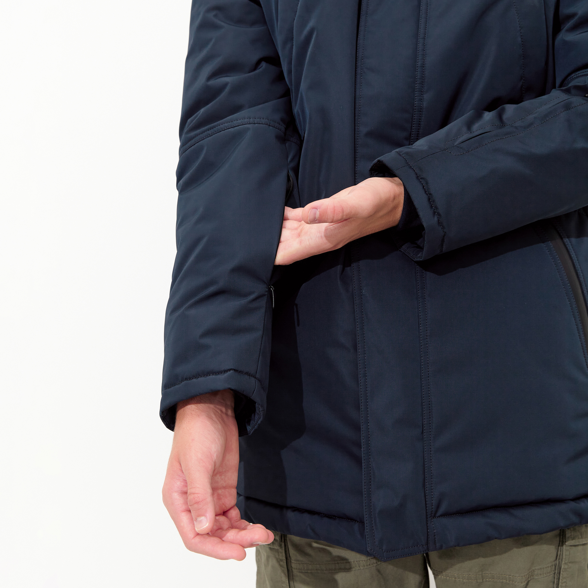 - Пата по низу рукавов на регулируемой кнопке.
