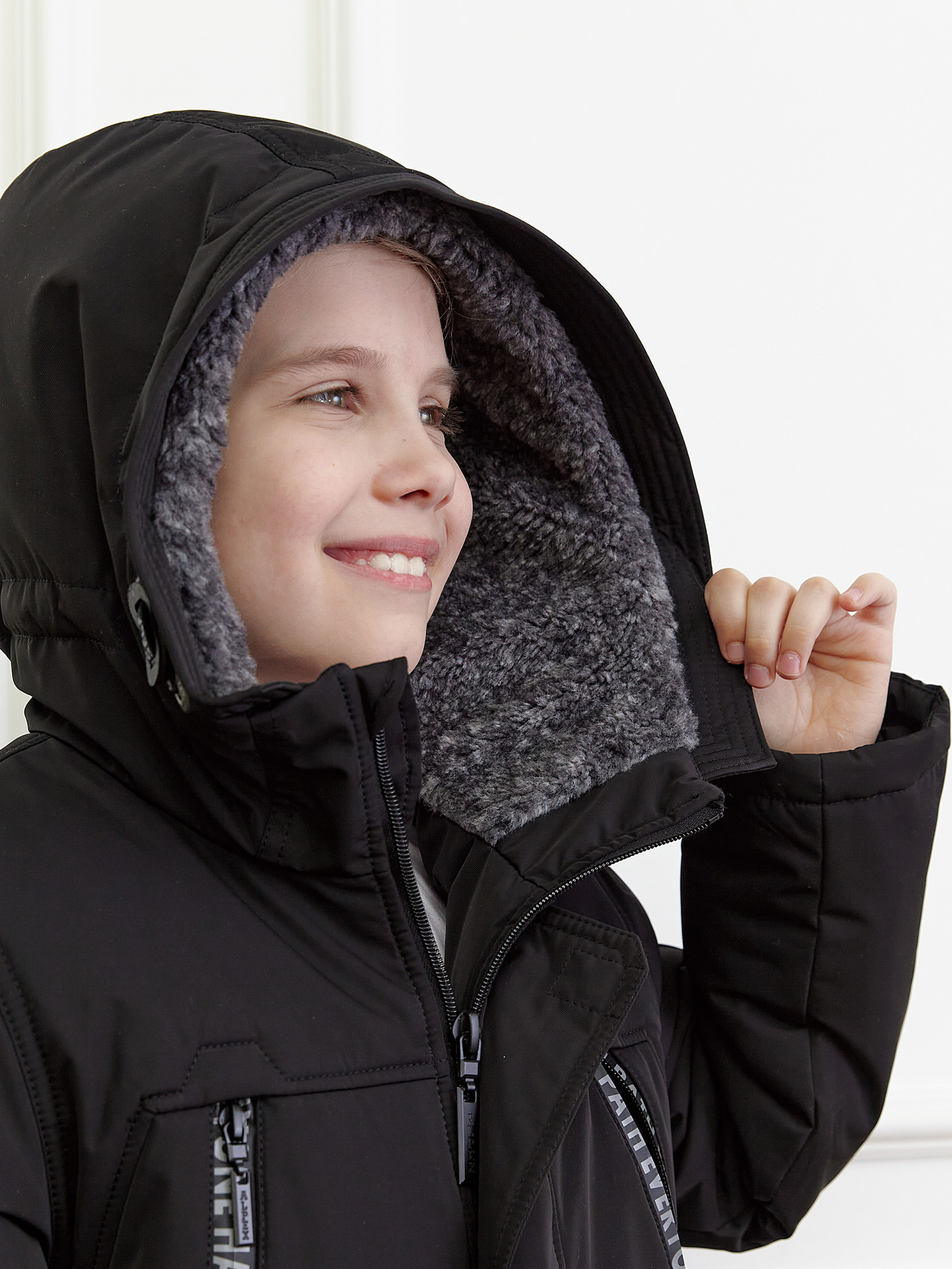 - Капюшон с искусственным мехом.