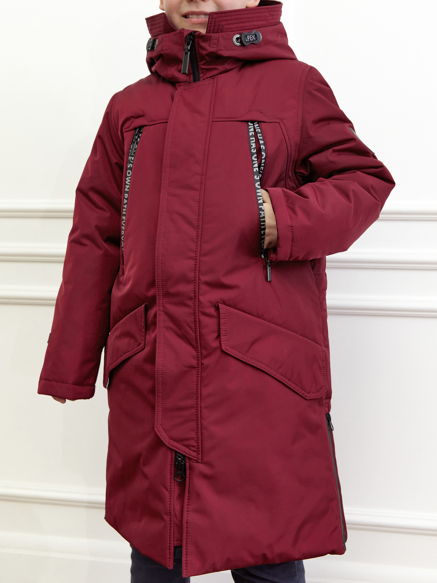 - Капюшон: несъёмный, объёмный.