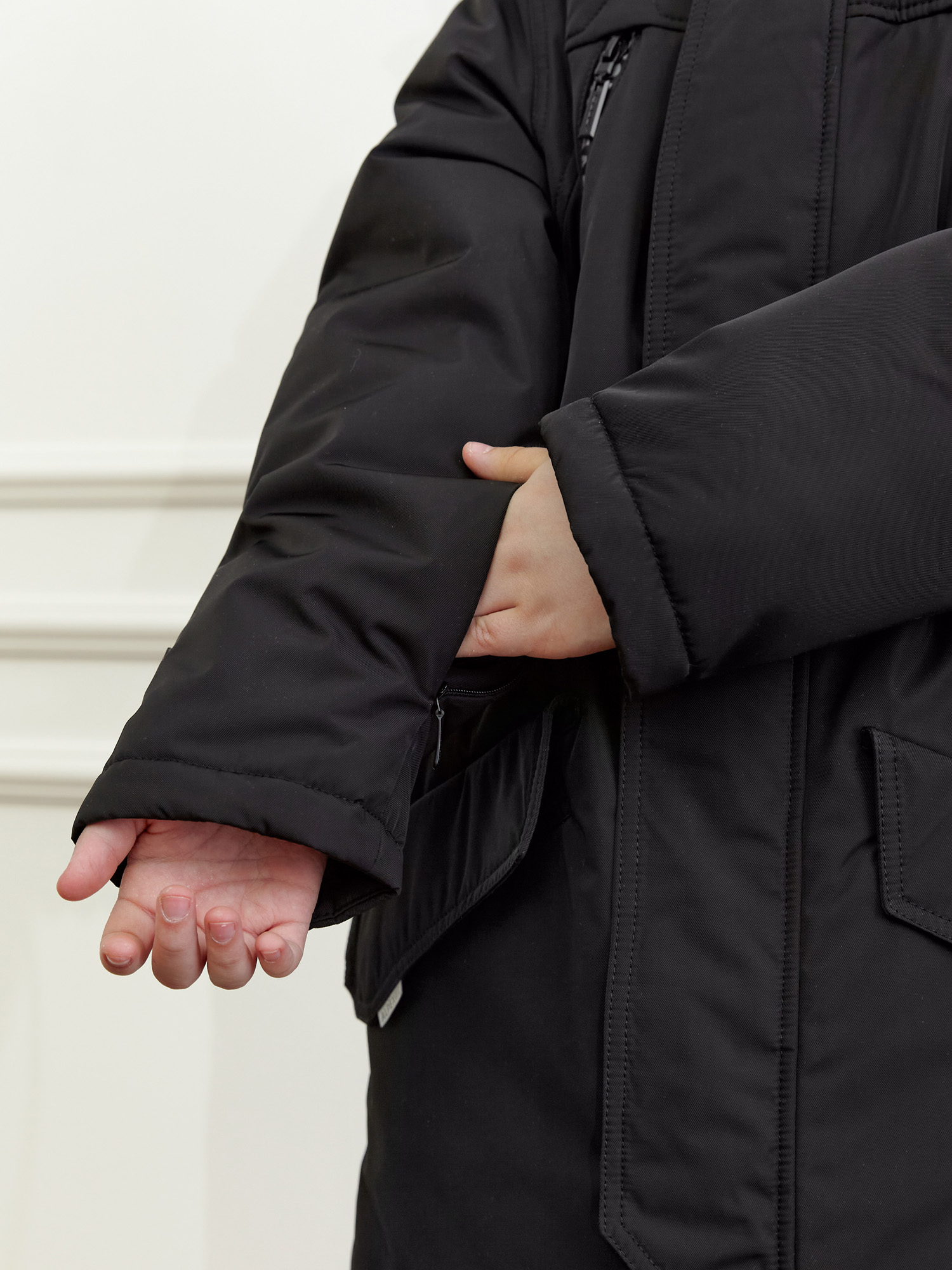 - Двухзамковая молния с подпланкой и ветрозащитной планкой на магнитах.