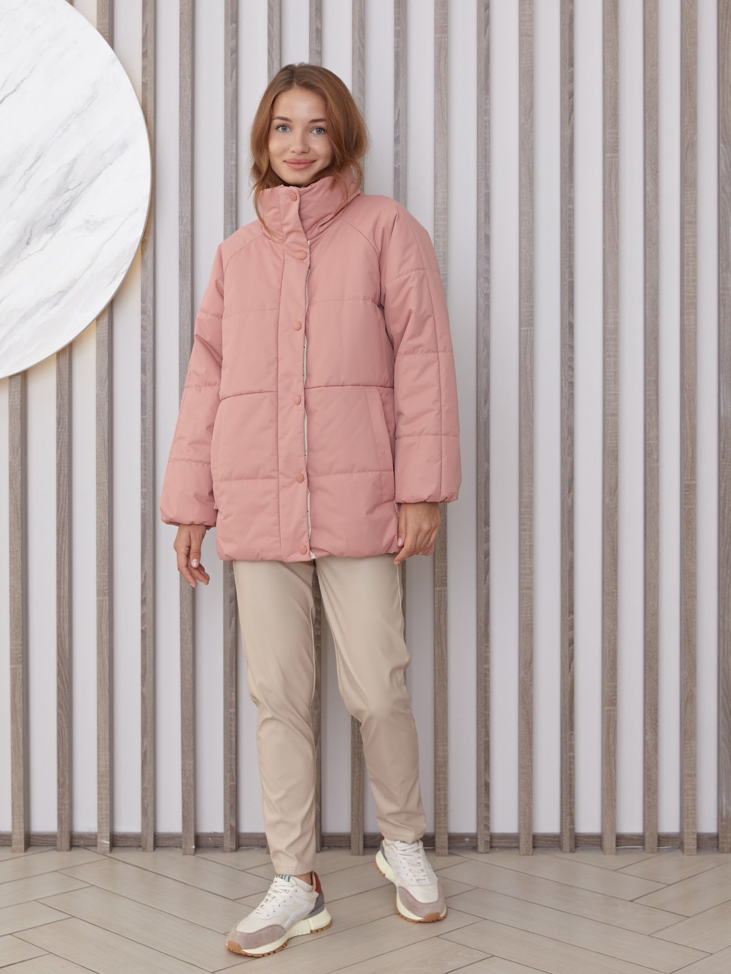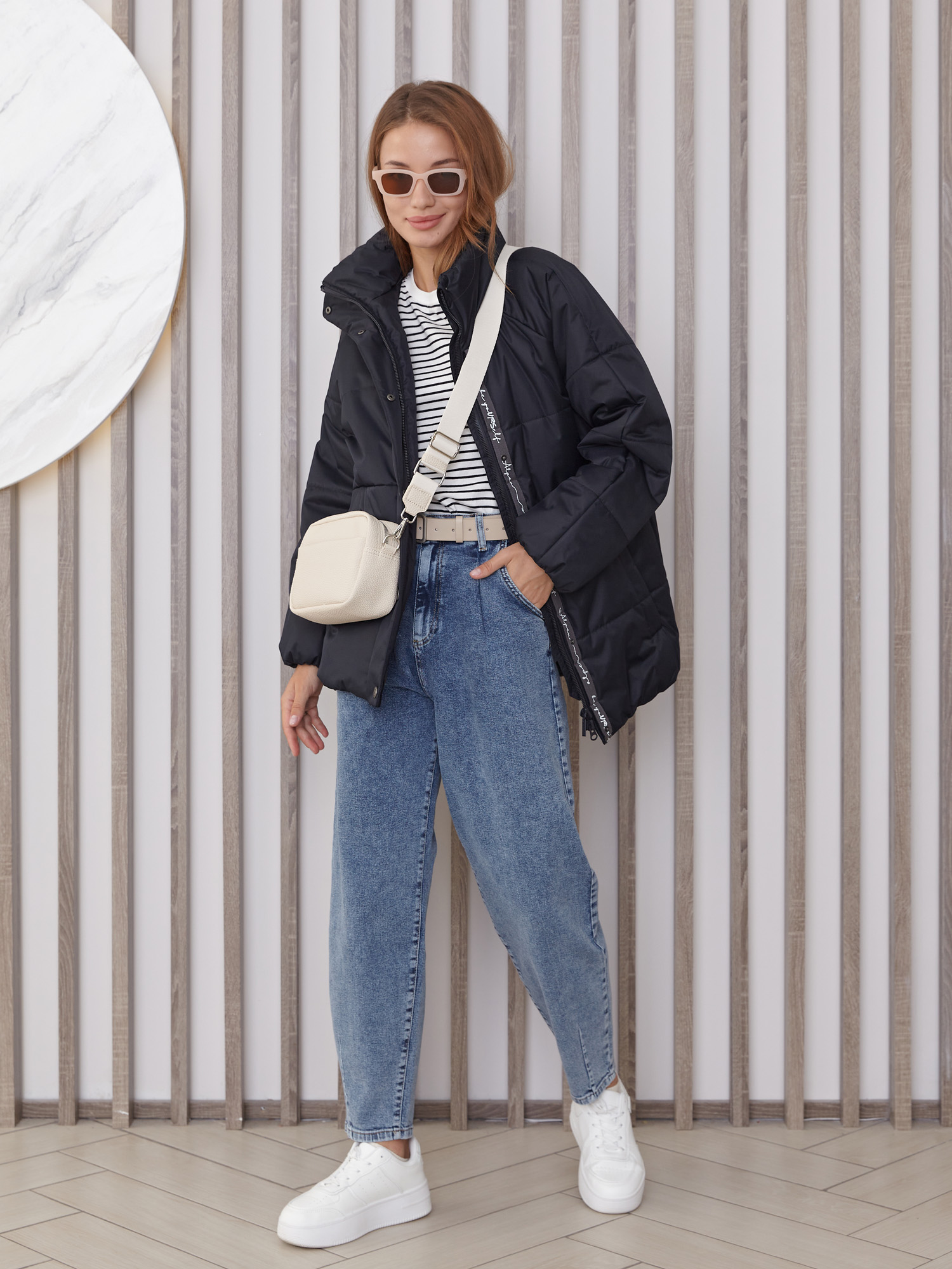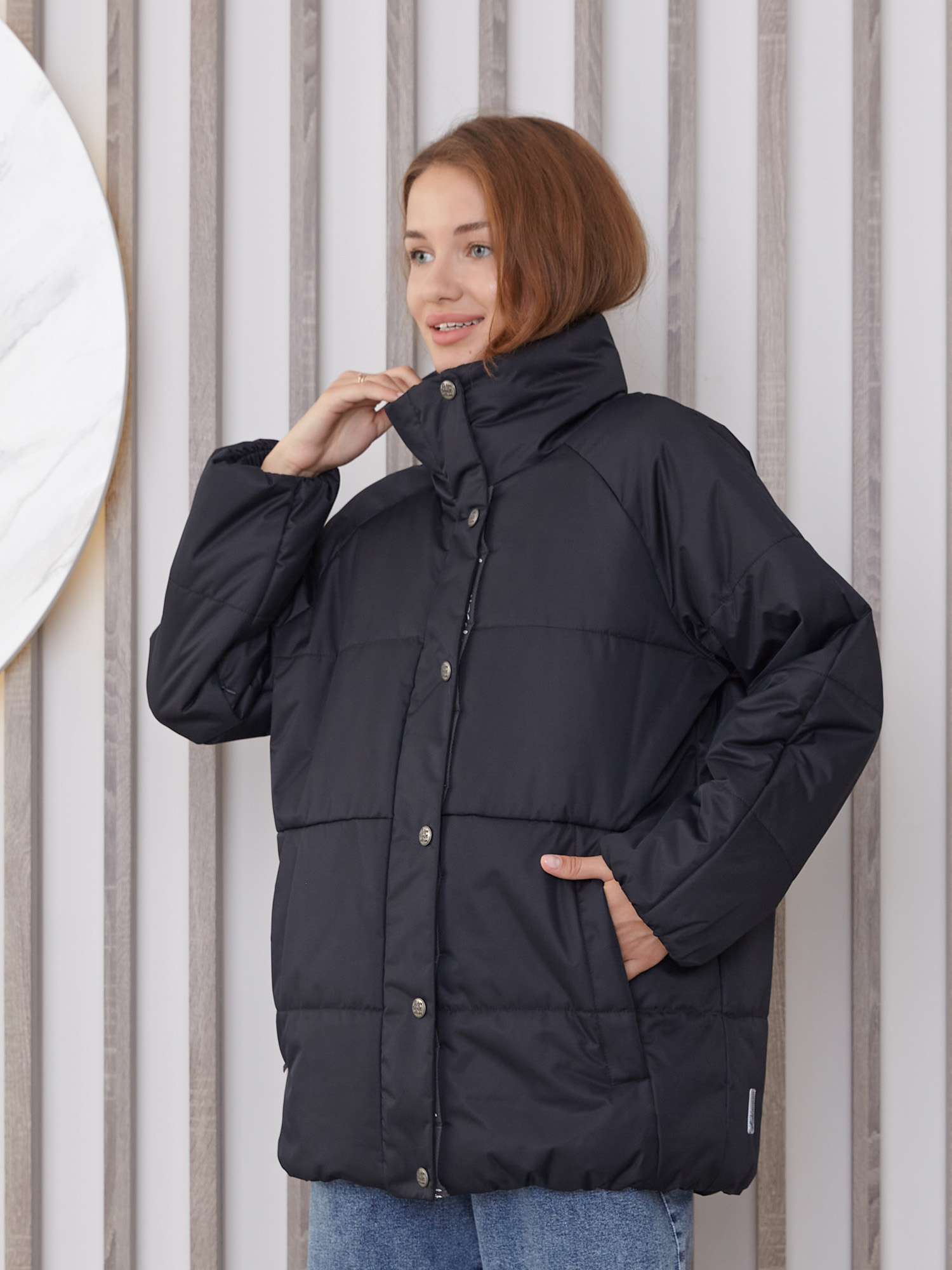 Ориентируйтесь на таблицу производителя в галерее: для oversize-кроя предусмотрена прибавка 6–8 см к вашим меркам.
