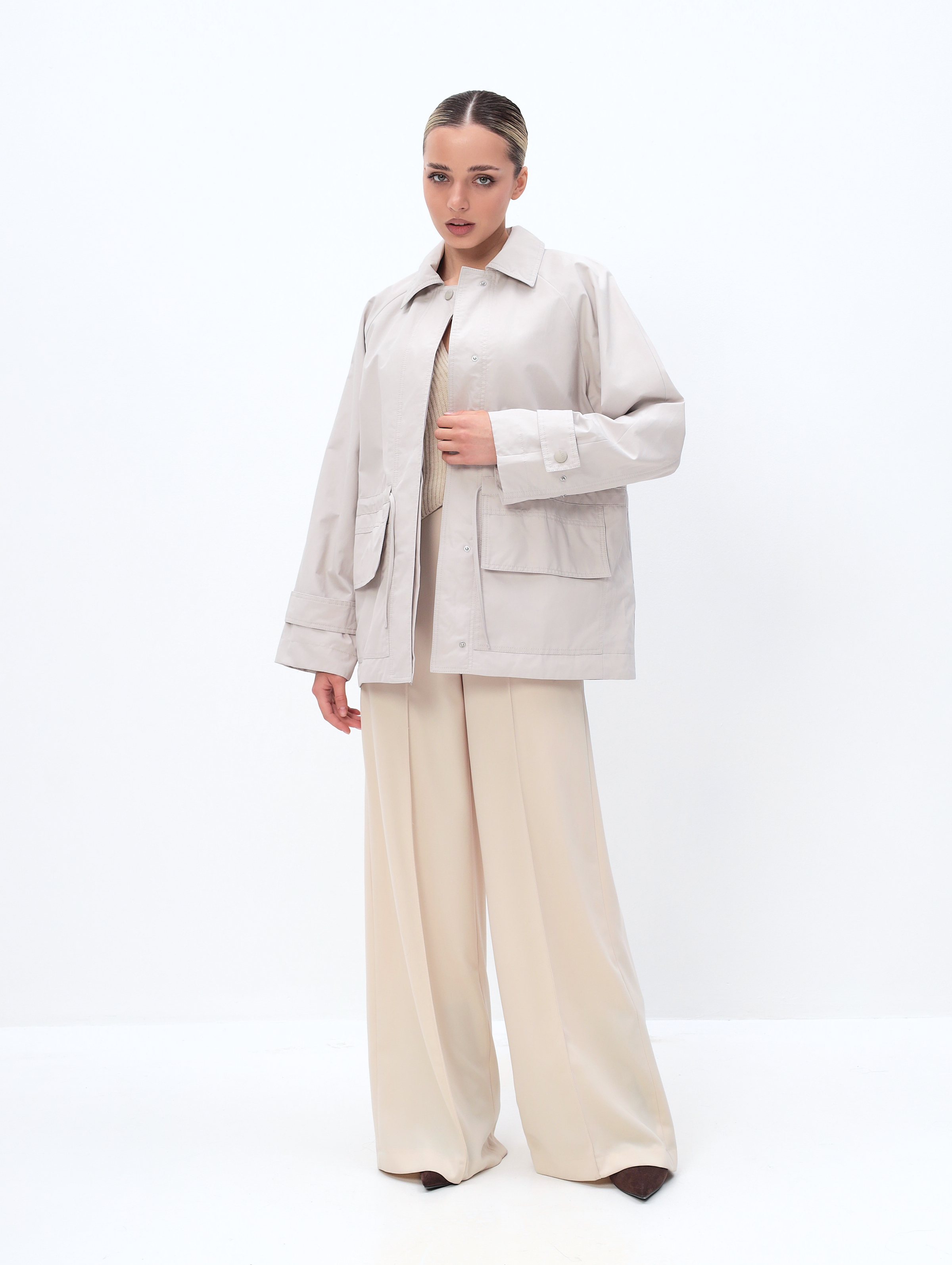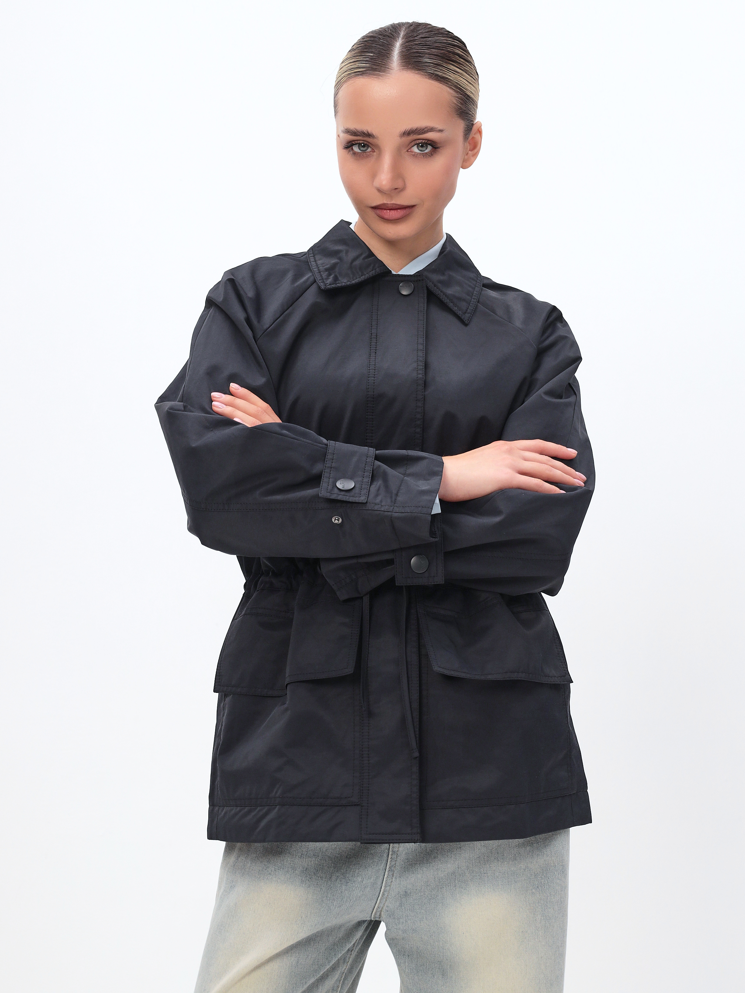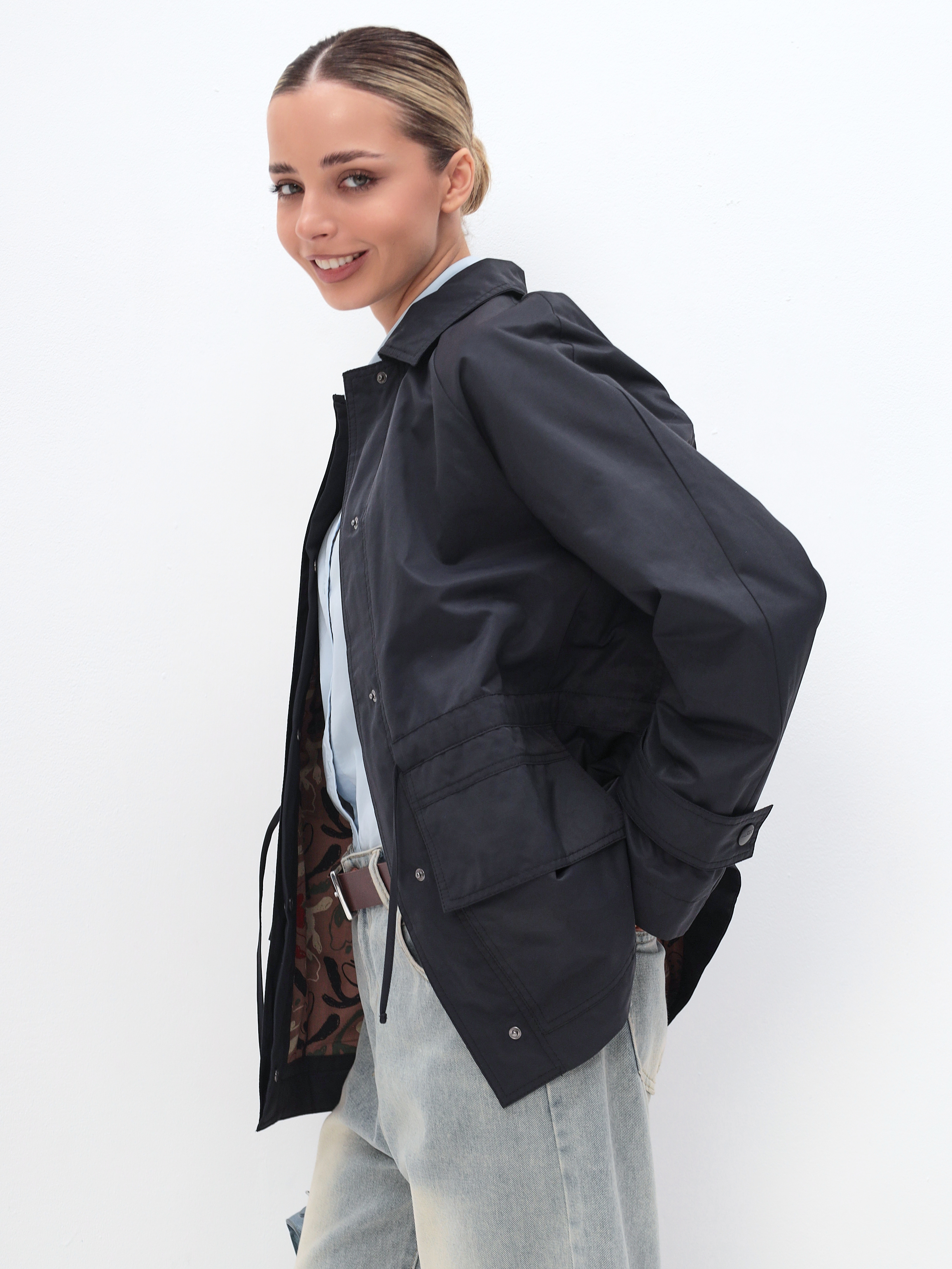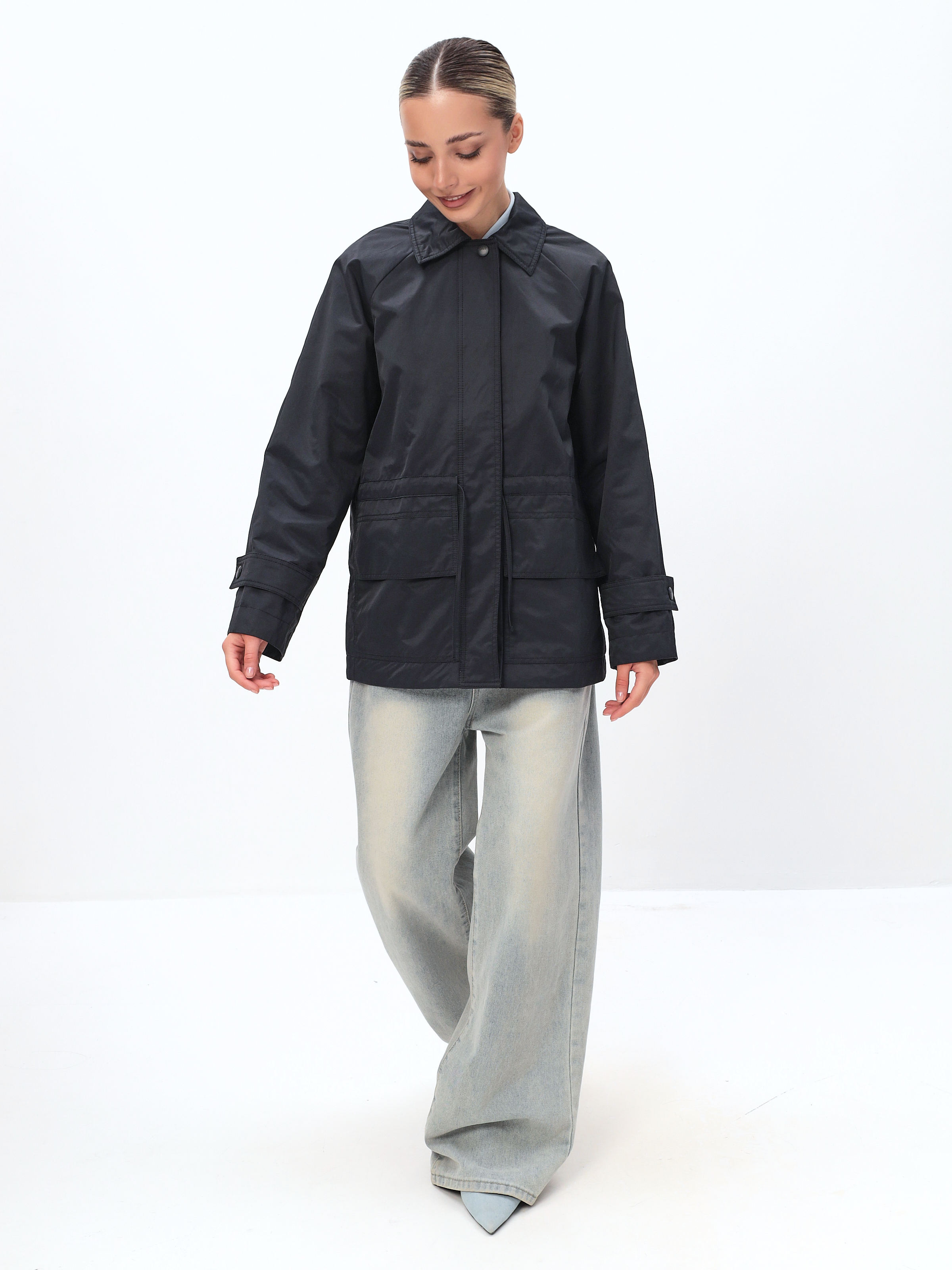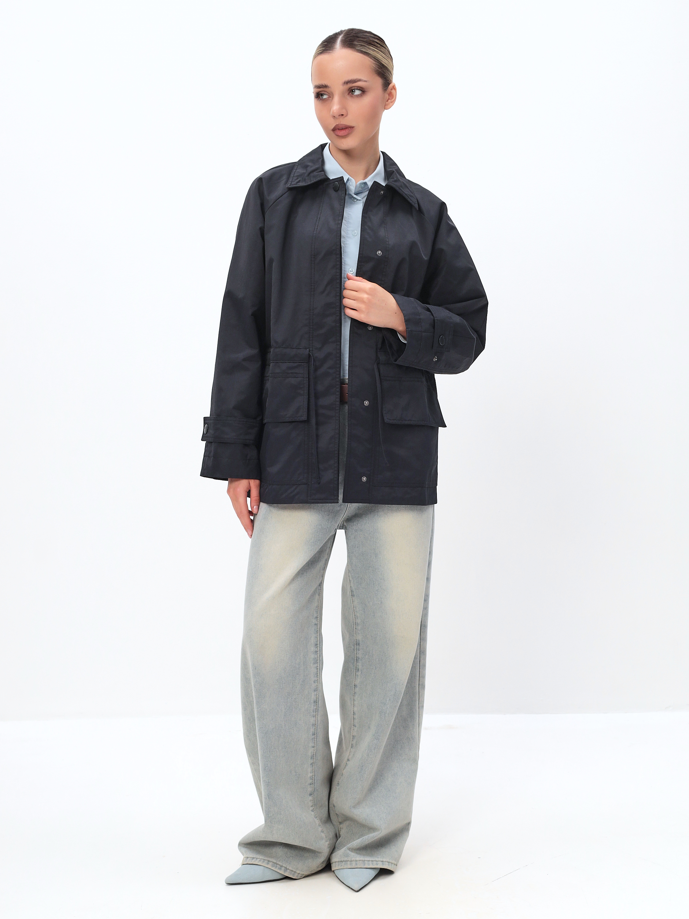 Ветровка женская из хлопка весна-осень модная, выполнена в трендовом оверсайз стиле, что придает образу современный и стильный вид.