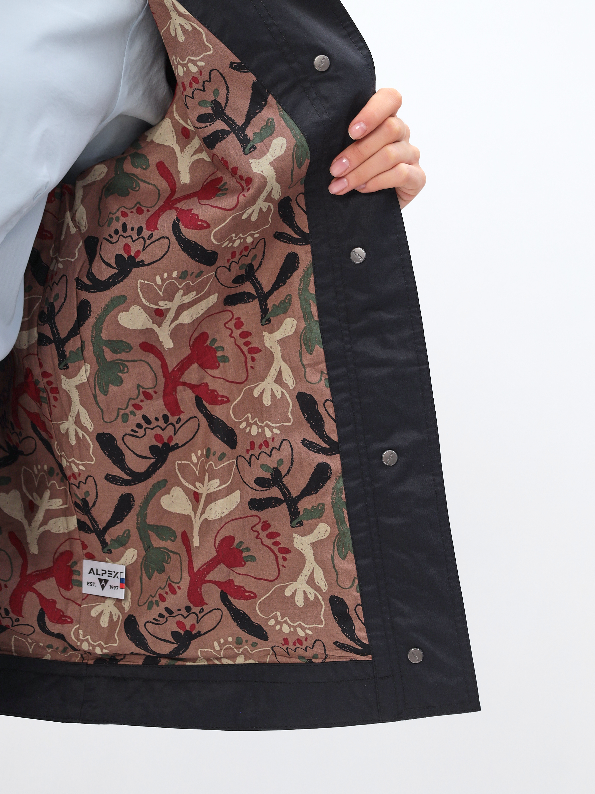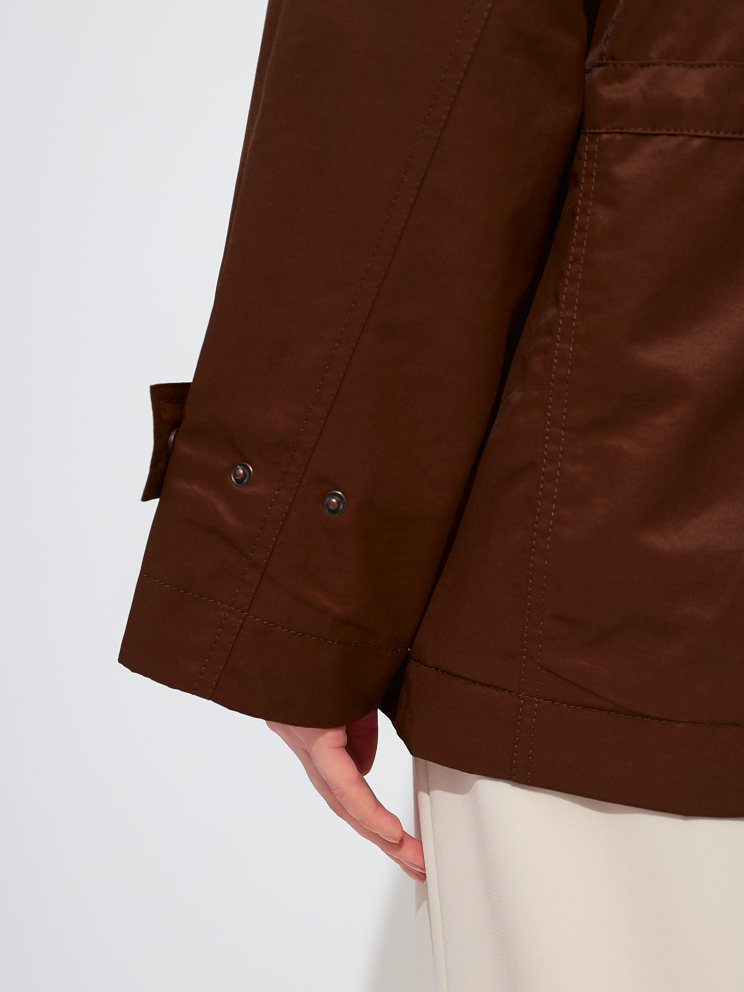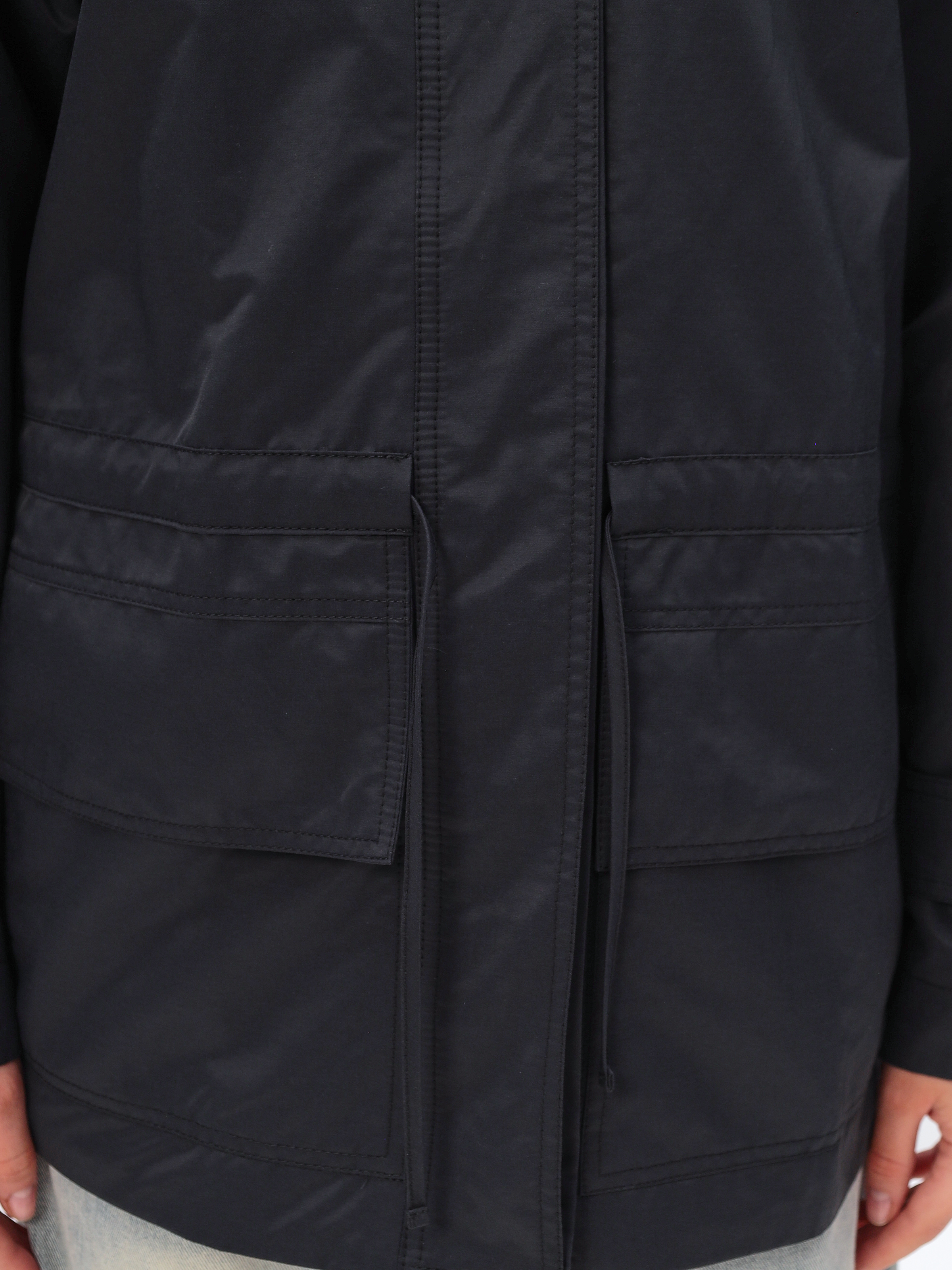 Ветровка женская удлиненная оснащена внешней ветрозащитной планкой на кнопках, которая защитит от ветра и холода.